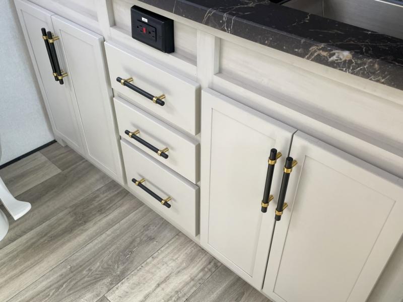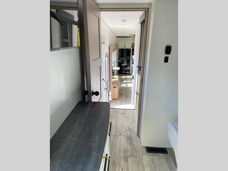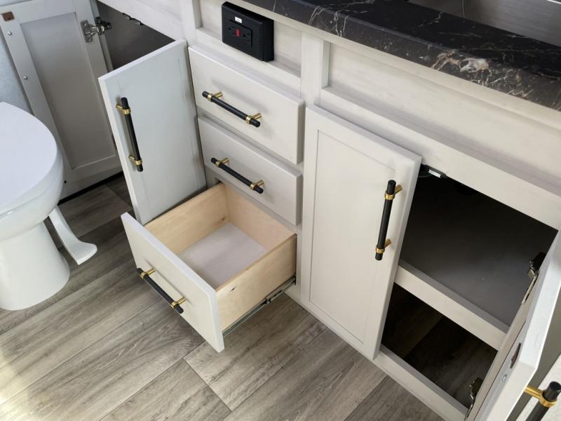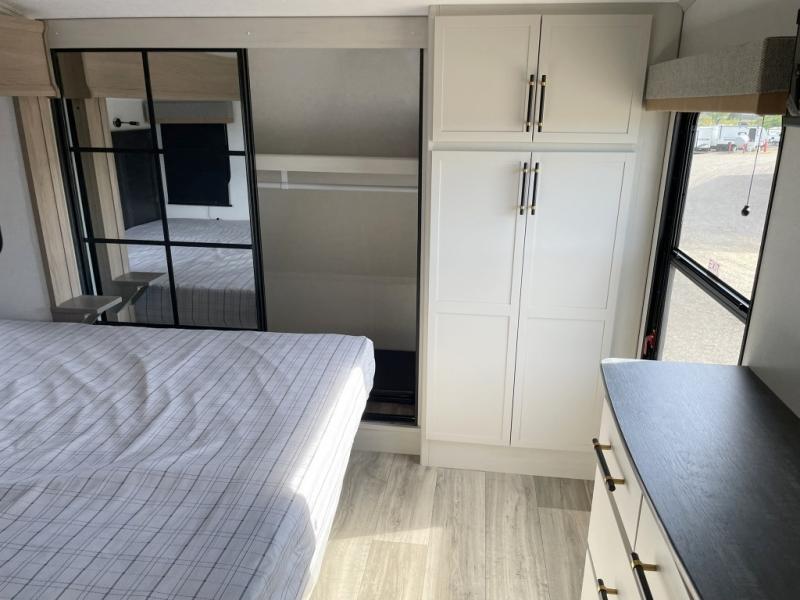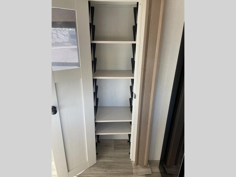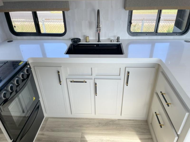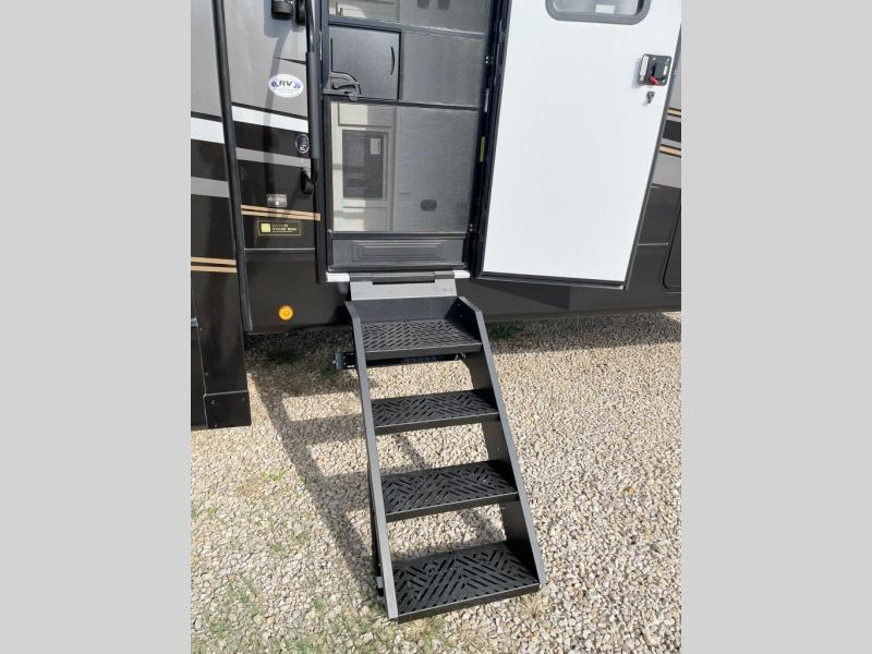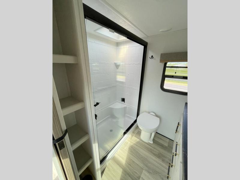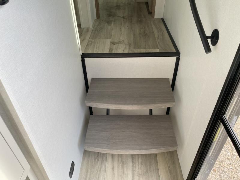 New floorplan for 2026 and this one looks to be amazing! A HUGE rear kitchen with wrap-around counters. You will love the L-shaped sofa in the living room. And this fifth wheel looks amazing! We had it upgraded to the the "Phantom" full body paint.