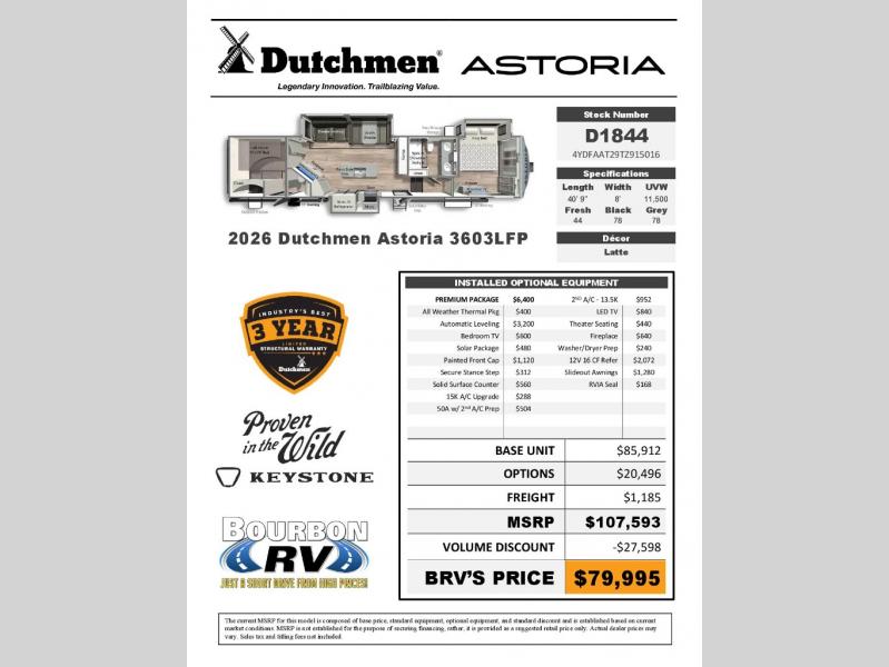 Dutchmen Astoria Platinum Series 3603LFP Highlights: