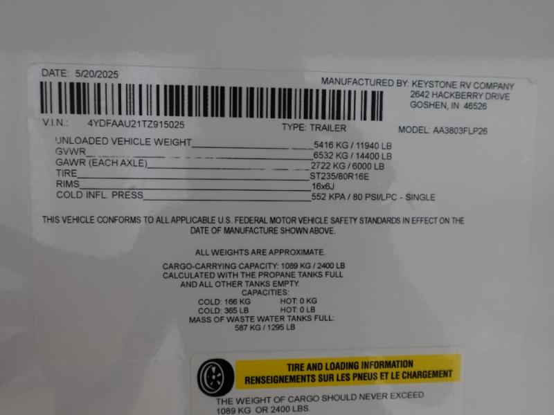 | VIN | 4YDFAAU21TZ915025 |