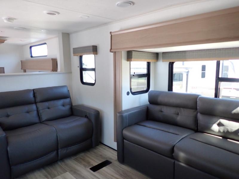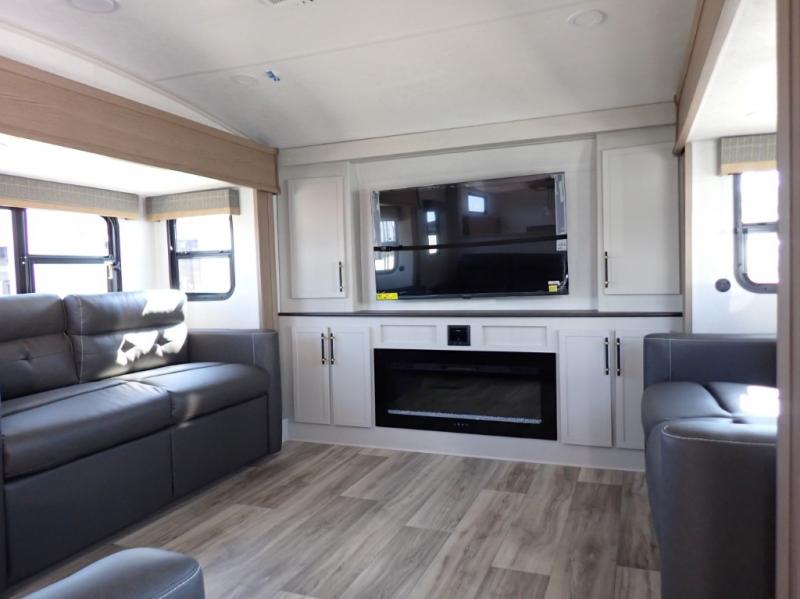 What is most important to you when it comes to camping? If it is spending quality time with family and friends then the Astoria 3803FLP is for you! This stylish fifth wheel is all about "chillaxing" with those you love. The standout feature of the 3803FLP is the front living room... two sofas, theater seating, entertainment center and a fireplace makes this area the focal point of you RV.