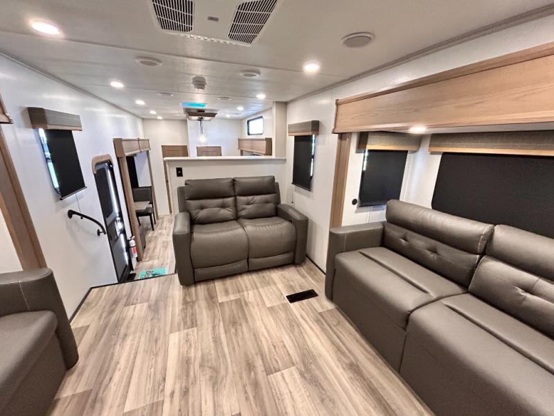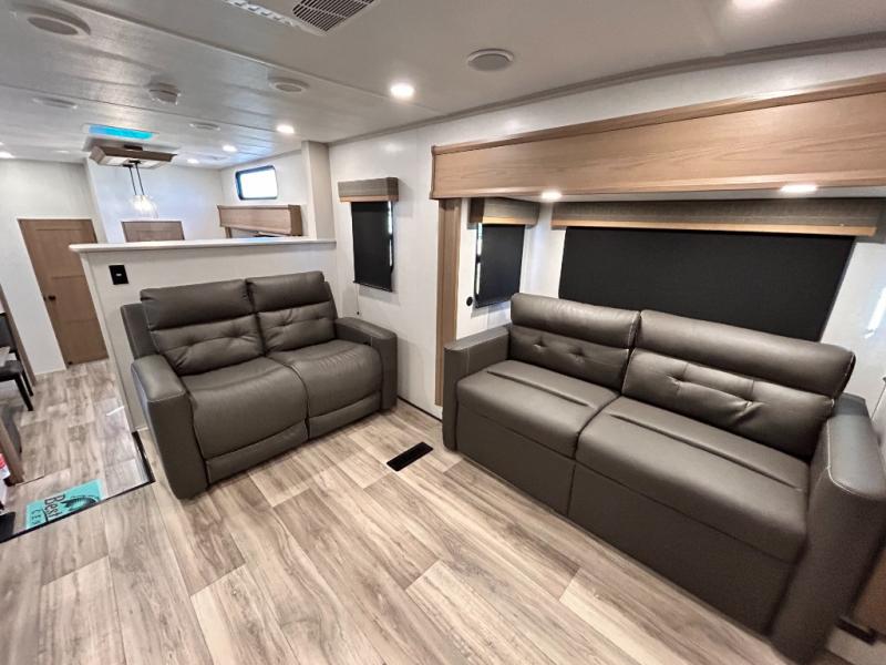 Front Living / Auto Leveling System / Theater Seating / 2nd AC / King Bed / Slide Topper / Solar System