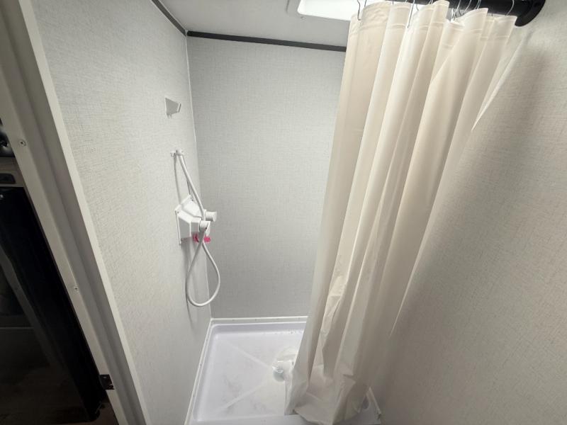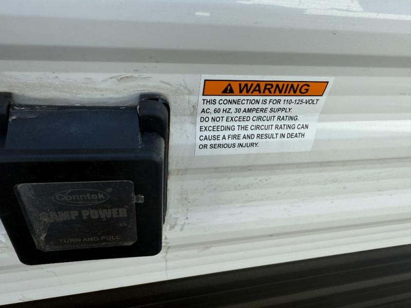 A perfect trailer for your family of three to five featuring a set of bunk beds for the kids or guests, a queen bed up front for you, and the booth dinette can be converted to sleep one or two more depending on size. This unit is cozy and convenient providing you just what you need to enjoy a little adventure away from home. For meals, there is a two burner cooktop and sink, plus a 3.3 cu. ft. 12V refrigerator for your perishables. You will all appreciate the convenience of having your own private bath so that you don't need to use the campground facilities at night. You will also enjoy spending time outside with an 8' power awning to provide even more living space outdoors!