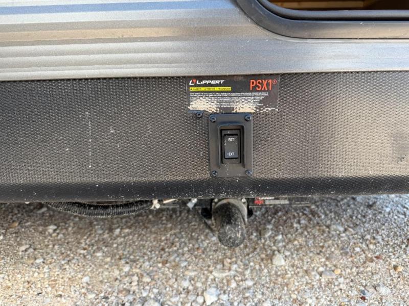 Load up for a fun weekend or long vacation with this trailer in tow! Whether you camp close or far away, you will have eight to nine sleeping spaces thanks to the residential queen bed in the semi-private bedroom, the double-size bunks near the rear corner bathroom, and the furniture in the middle. Everyone can take turns getting dressed in either the full bathroom, or front bedroom once the privacy curtain is closed. There is plenty of storage found throughout in the closets, overhead cabinets, and along the exterior in the pass-through compartment for those longer items. And the 14' power awning with LED lights gives you an outdoor living space protected from the elements, so just add your own camping chairs and such.