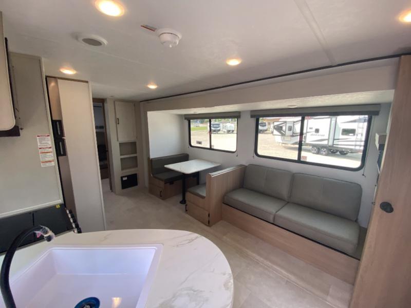With any lightweight Colorado travel trailer by Dutchmen, you will enjoy plenty of interior space, quality construction, and conveniences to make each trip enjoyable. The durable roof structure includes a TPO roof and fiberglass insulation, and the insulated structure features a metal exterior panel and Lauan interior panel so you can enjoy your RV for years to come. You will appreciate the high output furnace to keep your warm during colder camping months, and the magnetic baggage door catches will let you easily pack in your gear. There is backup camera prep and solar prep on each model, along with a power awning for protection against the elements when you sit outside. Inside, the LED lighting will make your space bright and open, and the upgraded residential flooring will be easy to keep clean.