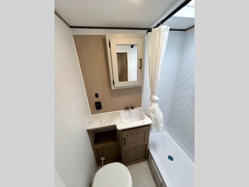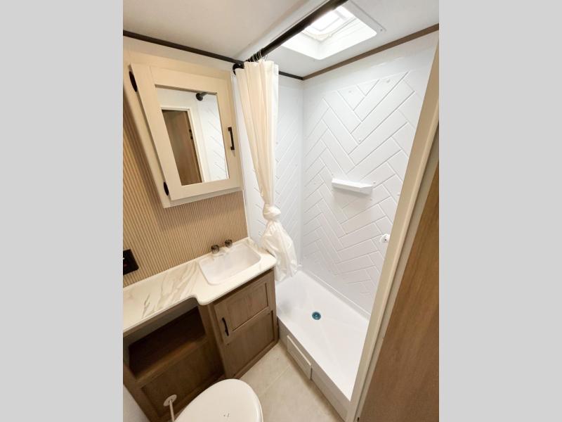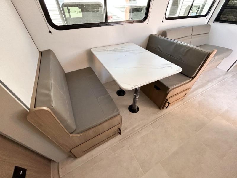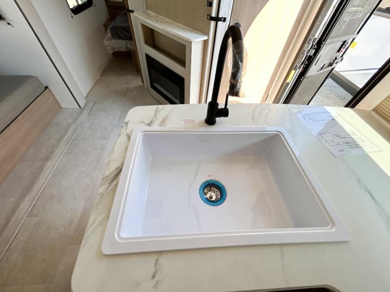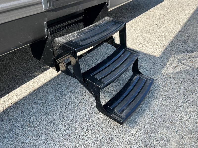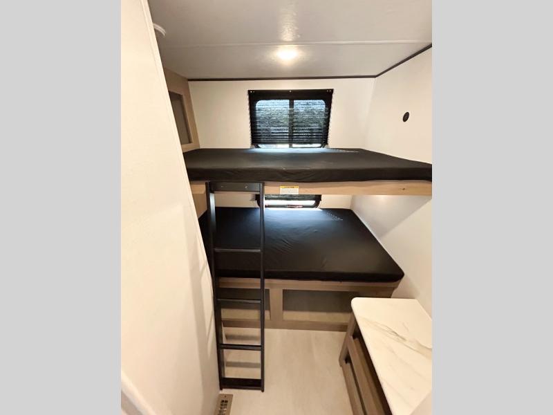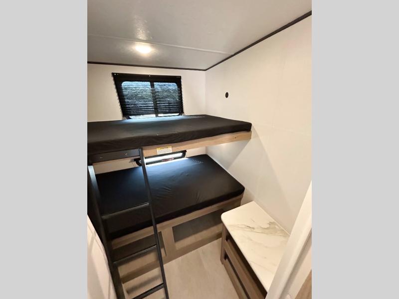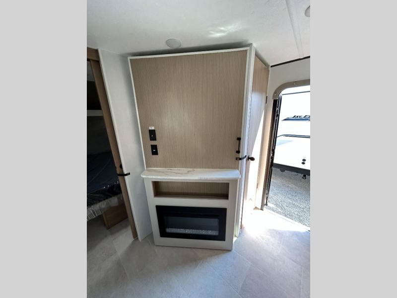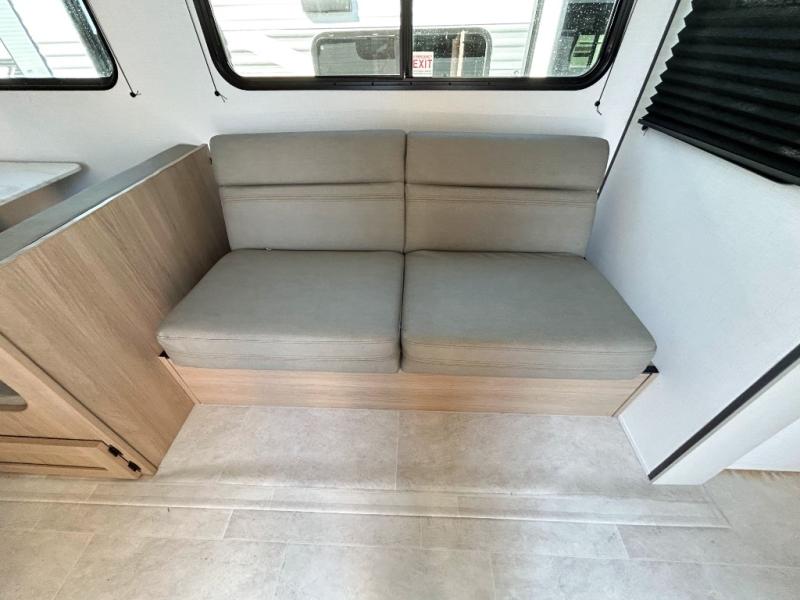 You will have everything you need in this travel trailer! Starting with a fully equipped interior kitchen, as well as an outdoor kitchen to prepare all of your favorite meals. Enjoy your meals at the booth dinette and then either play a card game or head to the jackknife sofa with footrests to let your stomach settle while you relax in front of the cozy fireplace at the hinged entertainment center. The full bathroom has a shower with exhaust fan so you can rinse all of the sand out of your hair or off your feet each night. The rear private bunkhouse has a set of bunk beds with a ladder for privacy while changing or sleeping!