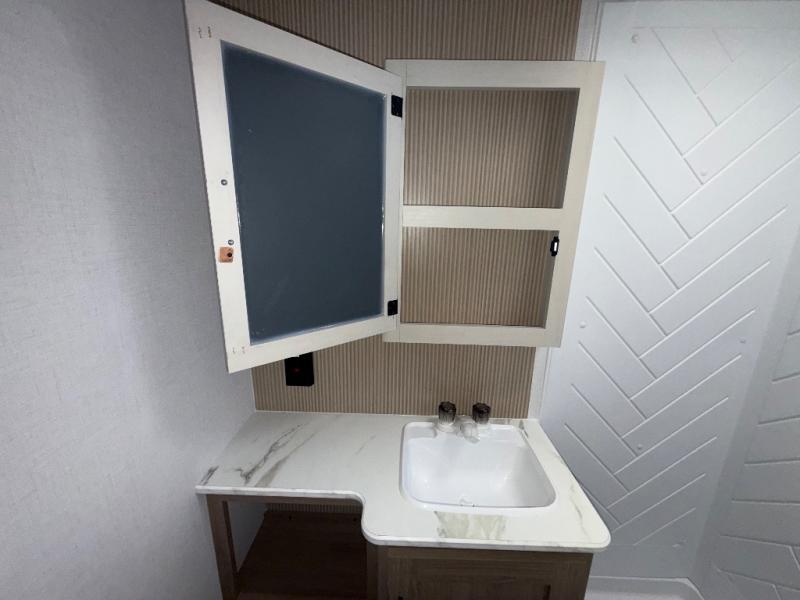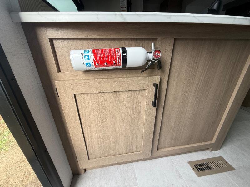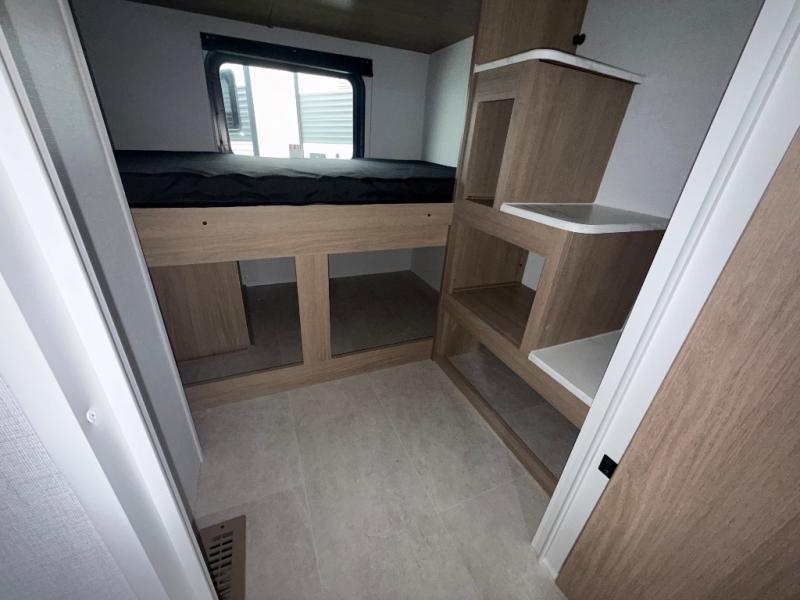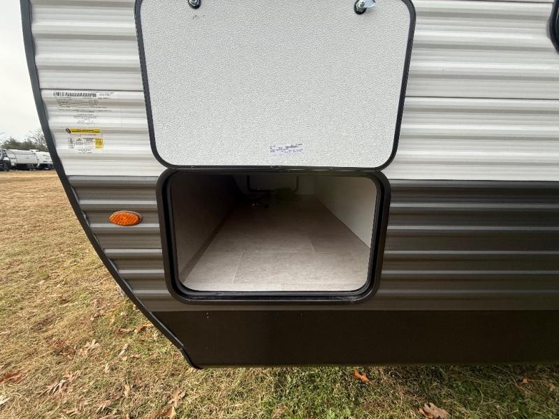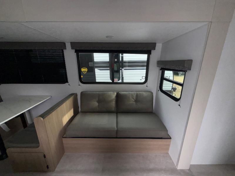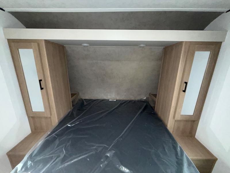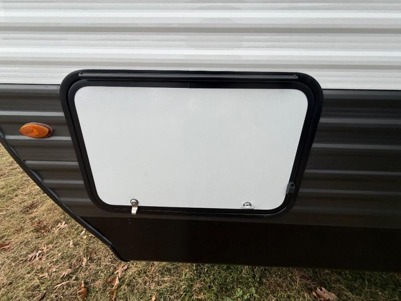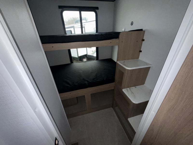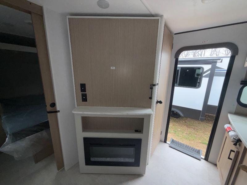 You will have everything you need in this travel trailer! Starting with a fully equipped interior kitchen, as well as an outdoor kitchen to prepare all of your favorite meals. Enjoy your meals at the booth dinette and then either play a card game or head to the jackknife sofa with footrests to let your stomach settle while you relax in front of the cozy fireplace at the hinged entertainment center. The full bathroom has a shower with exhaust fan so you can rinse all of the sand out of your hair or off your feet each night. The rear private bunkhouse has a set of bunk beds with a ladder for privacy while changing or sleeping!