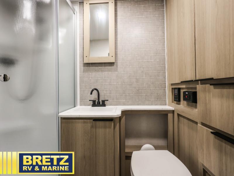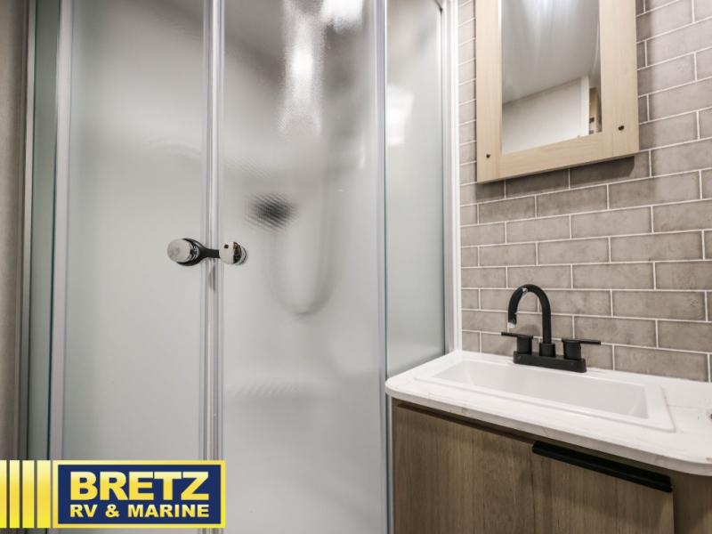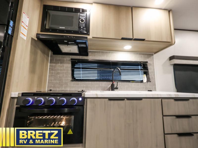 This couple's trailer is perfect for weekend excursions or extended getaways at your favorite state park. You will have your own queen bed up front with storage space for your things, and the full rear bath will add privacy and convenience. Prepare your meals on the cooktop or in the microwave oven, and you can dine together at the booth dinette. The dinette can also be used as additional sleeping space for one guest or two kids.