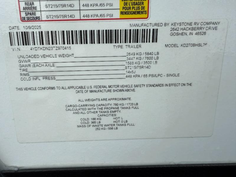 New 2026 Dutchmen RV Kodiak 270BHSL Travel Trailer