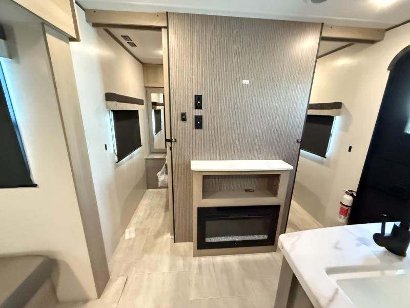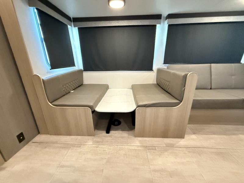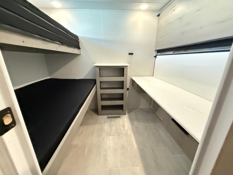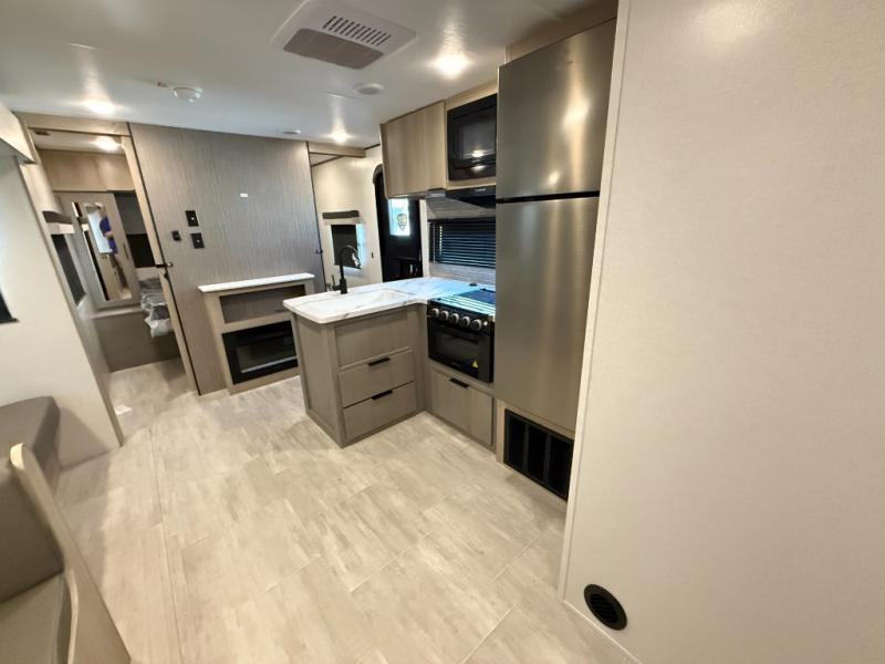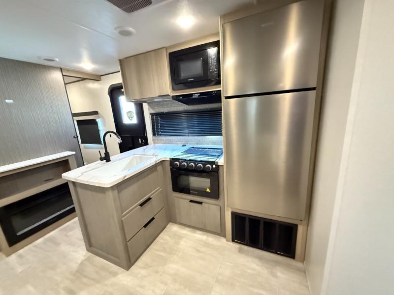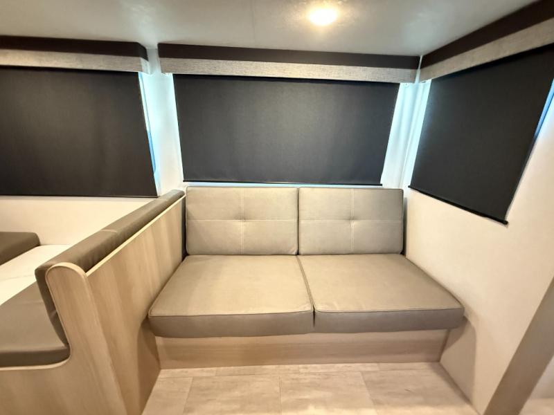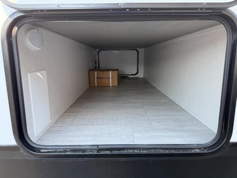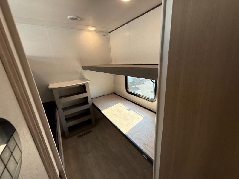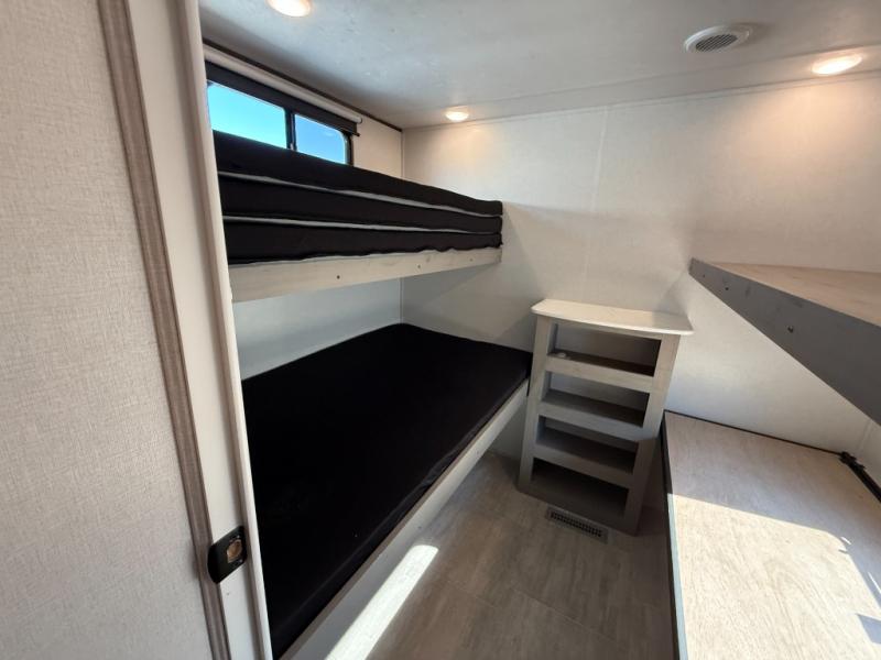 This travel trailer is perfect for weekend excursions or extended getaways at your favorite state park. You will have your own queen bed up front with storage space for your things, and the rear private bunkhouse will be perfect for guests. Here, you'll find a set of bunk beds plus a fold-up bunk over a booth dinette so there is a place to eat or play games back here. The full kitchen will let you cook meals each day, and the 10 cu. ft. refrigerator will keep your food fresh. Outside, a 14' power awning will provide some shade, and an outdoor refrigerator will keep cold drinks close by!