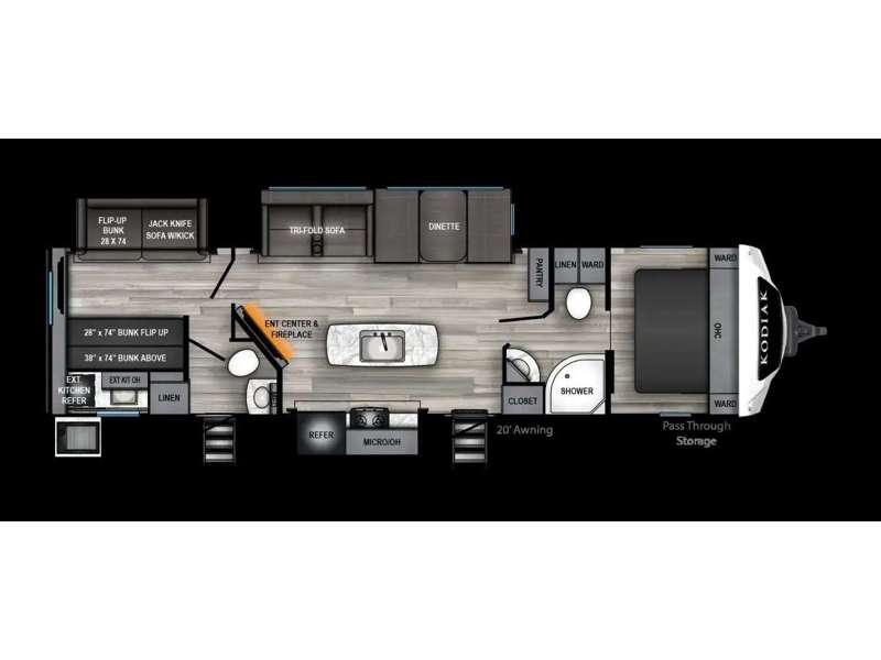 | Available Beds | RV Queen, Bunks, Dinette, Sofa |