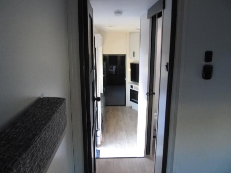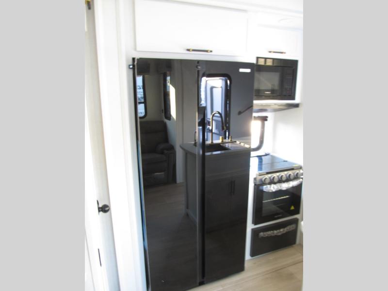 The Voltage V-Series by Dutchmen RV is a smaller and lighter weight choice when it comes to a toy hauler. These were designed with the same comforts that you would find in the standard Voltage models with the Signature Series collection including glazed cabinets with raised panel cabinet doors, modern hardware throughout, upgraded finishes and custom paint and stain. You will also enjoy the tankless water heater, garage Bed Lift System, Tuff Ply garage floor, and weight assisted ramp door for ease in loading and unloading your toys. A few bonus features like a 50" walk-in shower, 40" fireplace, and 30 gallon fuel station just makes your adventures that much more enjoyable! Come choose the Voltage V-Series as your new lightweight companion toy hauler today!