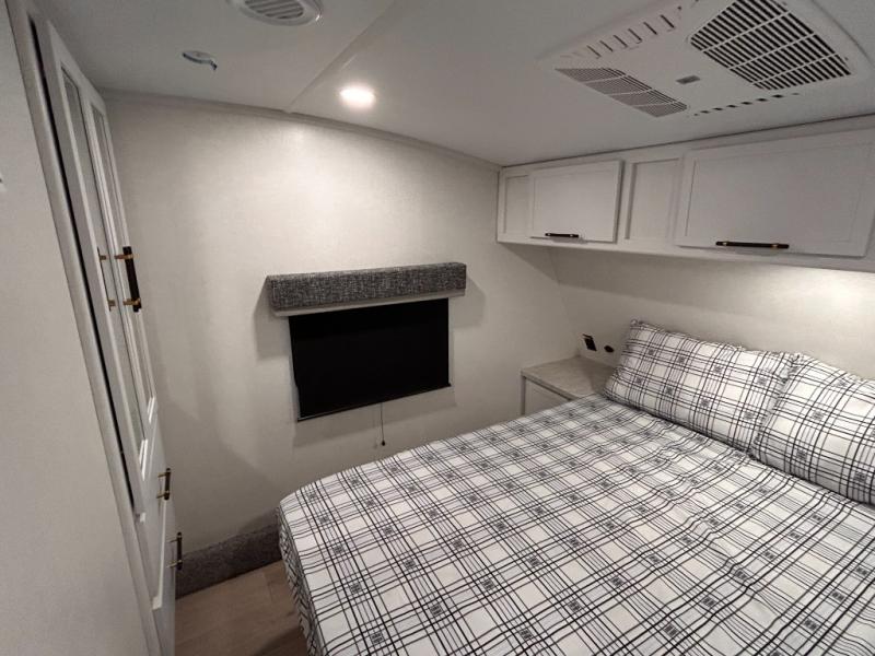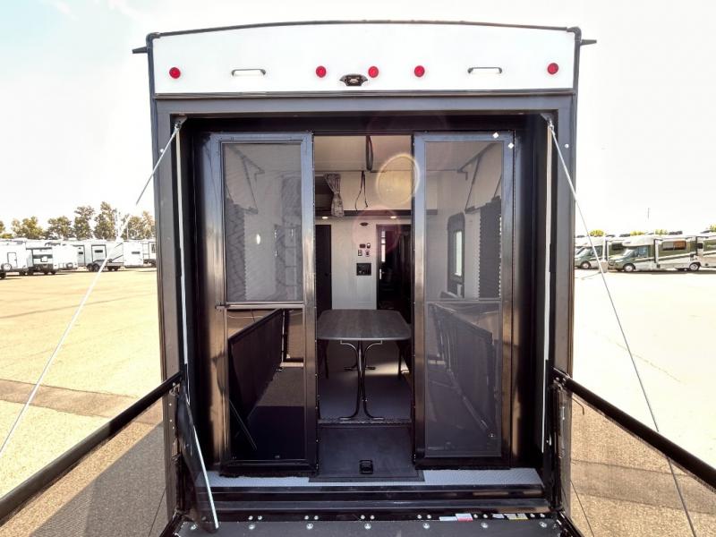 14FT CARAGE / ONAN 5.5 GENERATOR /Automatic Leveling System/ 3 AC's / Slide Toppers/ 3 SEASON DOOR