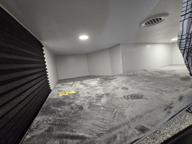 The Voltage V-Series by Dutchmen RV is a smaller and lighter weight choice when it comes to a toy hauler. These were designed with the same comforts that you would find in the standard Voltage models with the Signature Series collection including glazed cabinets with raised panel cabinet doors, modern hardware throughout, upgraded finishes and custom paint and stain. You will also enjoy the tankless water heater, garage Bed Lift System, Tuff Ply garage floor, and weight assisted ramp door for ease in loading and unloading your toys. A few bonus features like a 50" walk-in shower, 40" fireplace, and 30 gallon fuel station just makes your adventures that much more enjoyable! Come choose the Voltage V-Series as your new lightweight companion toy hauler today!