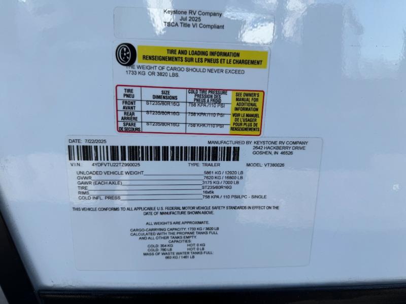 New 2026 Dutchmen Voltage V-Series fifth wheel toy hauler 3800 highlights:
