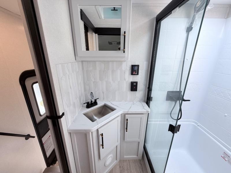 The Voltage V-Series by Dutchmen RV is a smaller and lighter weight choice when it comes to a toy hauler. These were designed with the same comforts that you would find in the standard Voltage models with the Signature Series collection including glazed cabinets with raised panel cabinet doors, modern hardware throughout, upgraded finishes and custom paint and stain. You will also enjoy the tankless water heater, garage Bed Lift System, Tuff Ply garage floor, and weight assisted ramp door for ease in loading and unloading your toys. A few bonus features like a 50" walk-in shower, 40" fireplace, and 30 gallon fuel station just makes your adventures that much more enjoyable! Come choose the Voltage V-Series as your new lightweight companion toy hauler today!