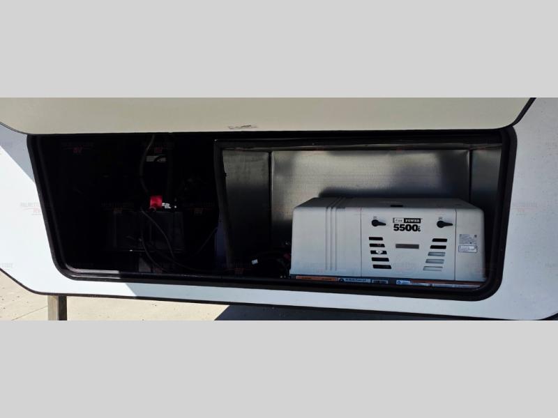 The Voltage V-Series by Dutchmen RV is a smaller and lighter weight choice when it comes to a toy hauler. These were designed with the same comforts that you would find in the standard Voltage models with the Signature Series collection including glazed cabinets with raised panel cabinet doors, modern hardware throughout, upgraded finishes and custom paint and stain. You will also enjoy the tankless water heater, garage Bed Lift System, Tuff Ply garage floor, and weight assisted ramp door for ease in loading and unloading your toys. A few bonus features like a 50" walk-in shower, 40" fireplace, and 30 gallon fuel station just makes your adventures that much more enjoyable! Come choose the Voltage V-Series as your new lightweight companion toy hauler today!