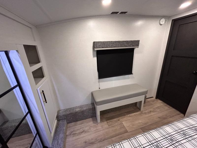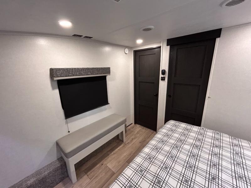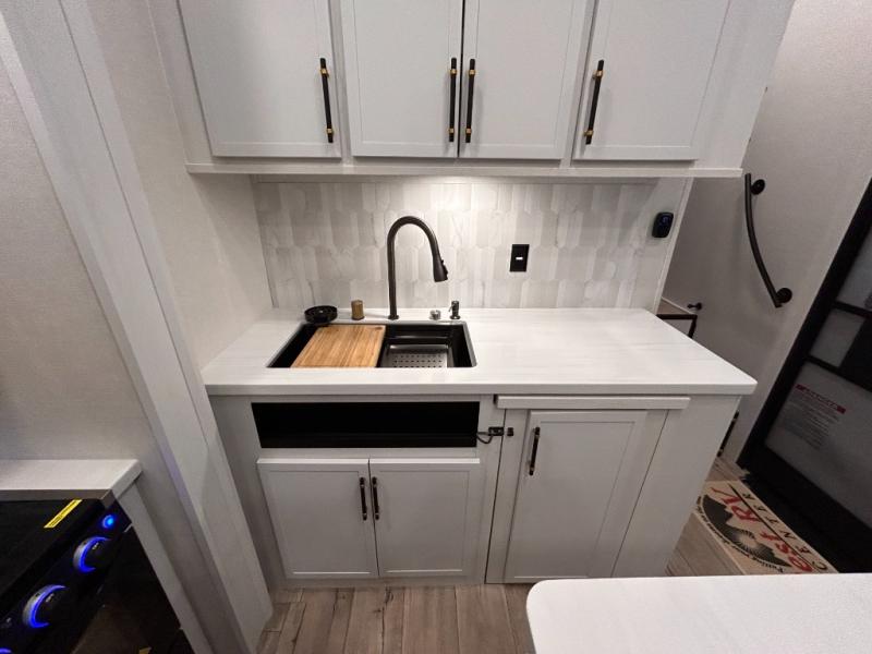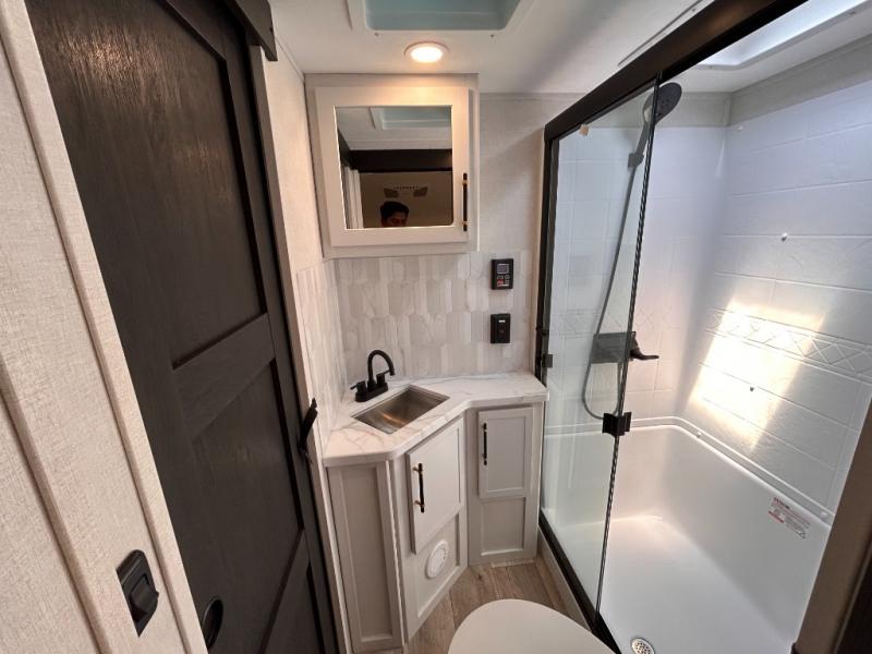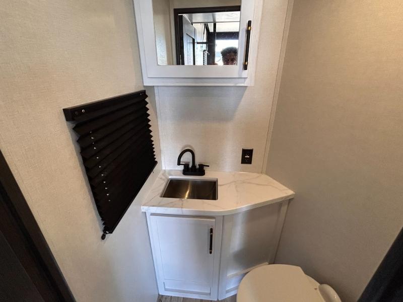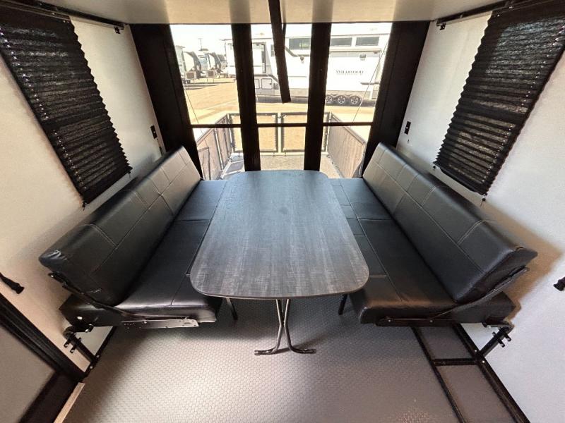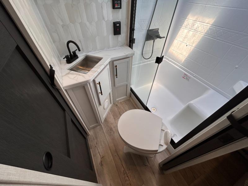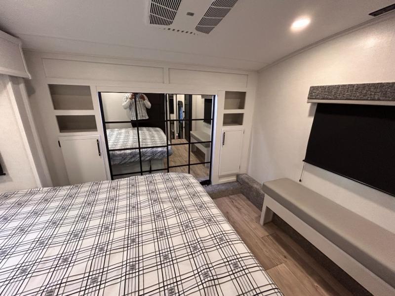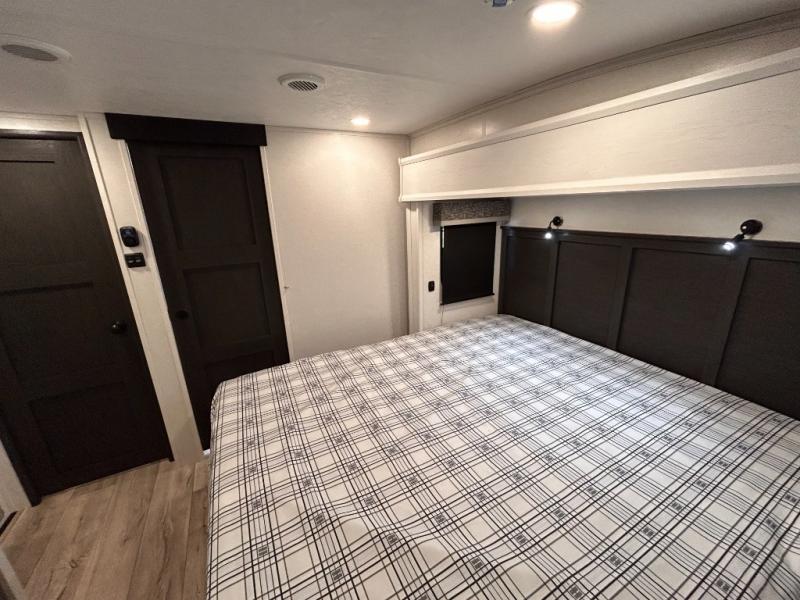 14FT CARAGE / 5.5K GENERATOR /Automatic Leveling System/ 3 AC's / Slide Toppers/Two Bathrooms/ 3 SEASON DOOR