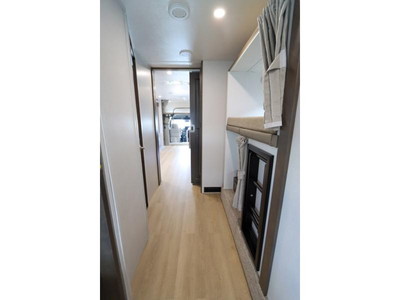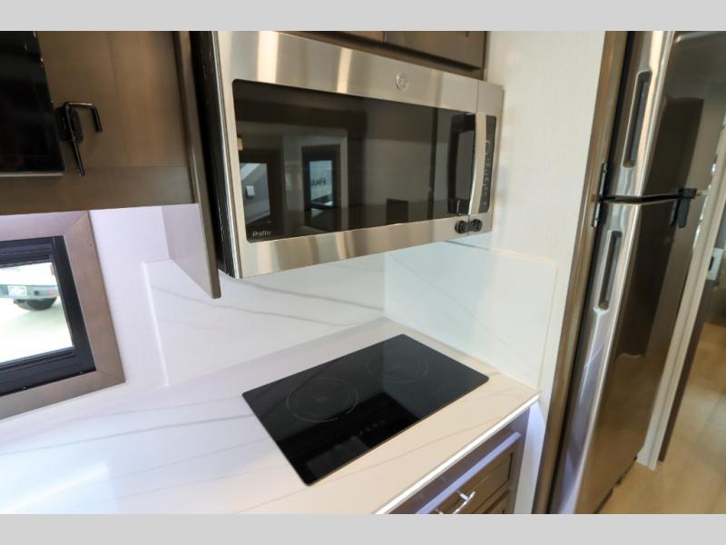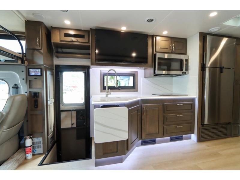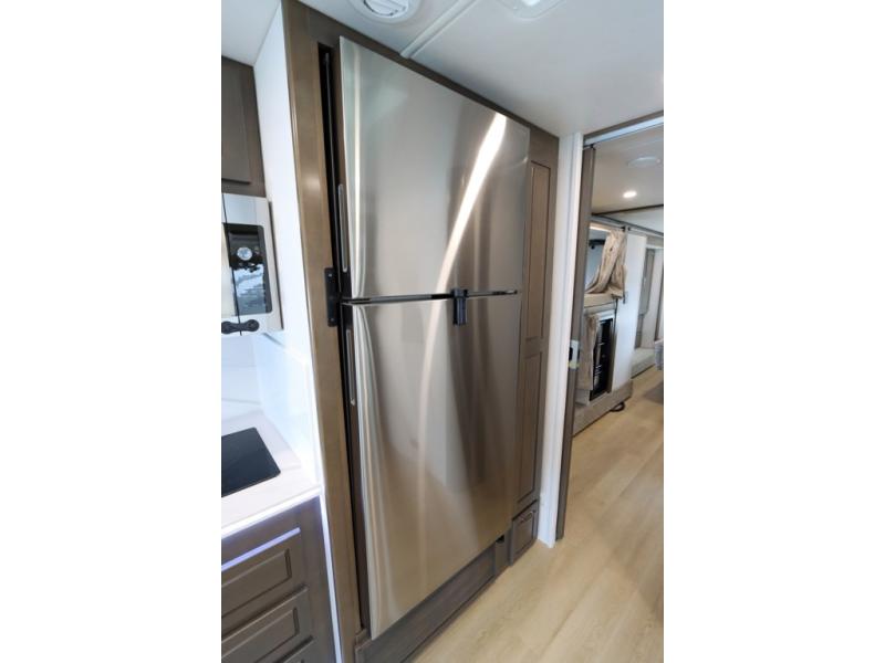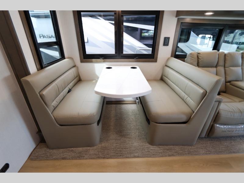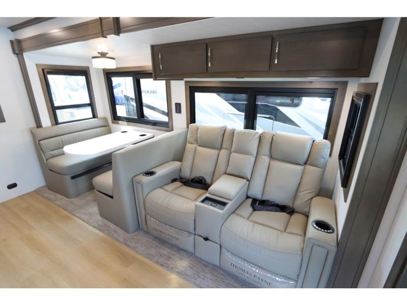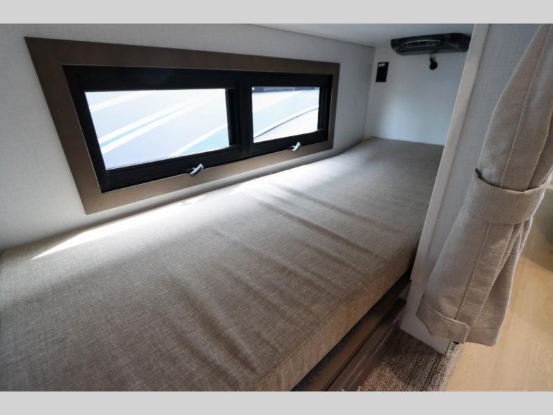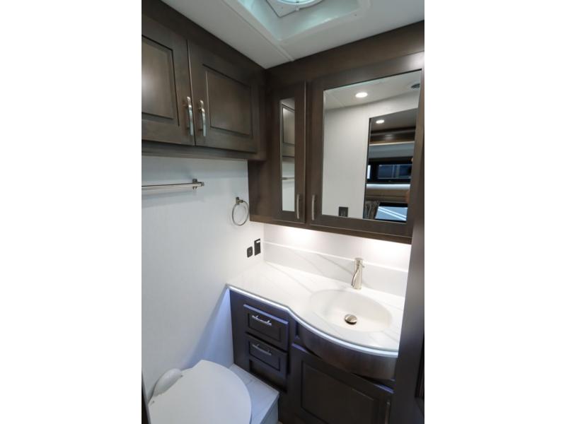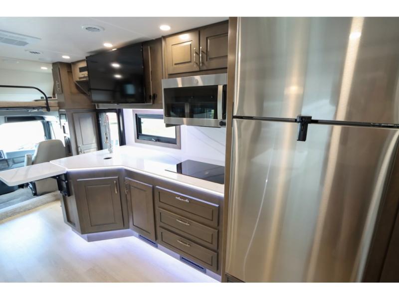 This DX3 Super C diesel motorhome is quite a beast! This coach has excellent sleeping accommodations with its king-size bed, set of bunk beds, Dream Dinette, and sleeper sofa. You can even add more sleeping space to this coach by selecting the optional bunk over cab. As you rest your tired body on the sofa, you'll be able to watch the 39" LED TV directly across from you. The kitchen is also right across from the sofa so that you can still chop veggies on the countertop extension while you enjoy the company of those resting on the furniture. The bathroom is another feature that will grab your attention. This space has a fiberglass shower, a shower skylight, a glass shower door, and an Oxygenics Body Spa RV shower head.