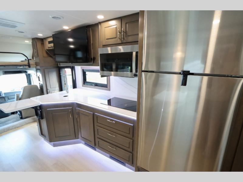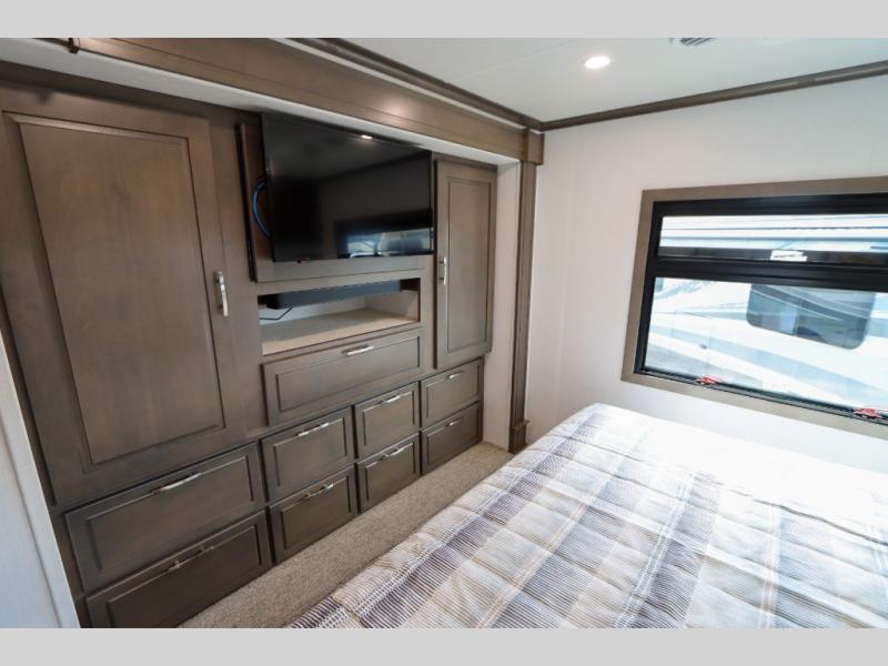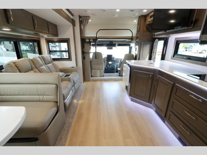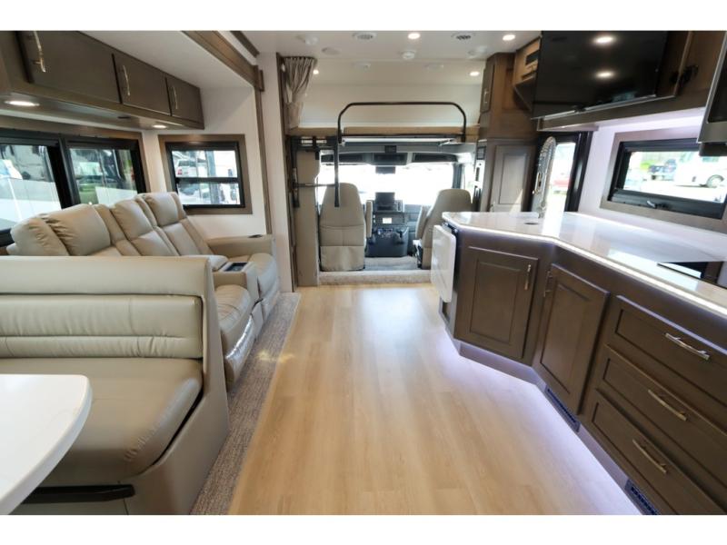 You'll have a hard time finding anything else that quite compares to the powerful precision found on the Dynamax DX3 Super C diesel motorhome! These elegant coaches will feel like a dream home with their top-notch kitchens, deluxe bedrooms, comfortable lounge areas, and exceptional exteriors. The cab has leatherette driver/passenger air ride seats, a quad-view camera system, and a Kenwood 10" touchscreen dash infotainment system to keep you comfortable while you travel, and the Winegard in-motion T4 satellite will deliver entertainment for the living room TV, bedroom TV, and exterior TV. You'll also find an 8kW Onan® diesel generator with auto transfer switch to make it easy to adventure since you will have your own power source.