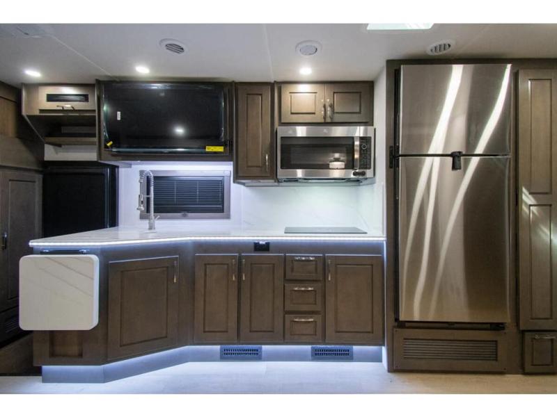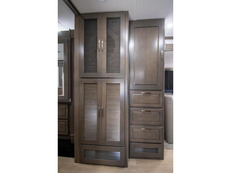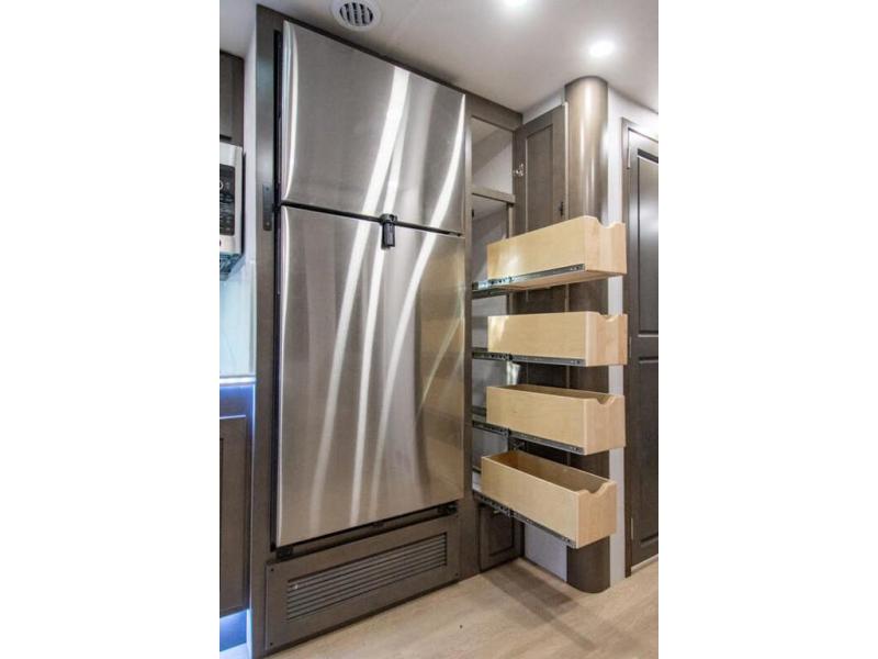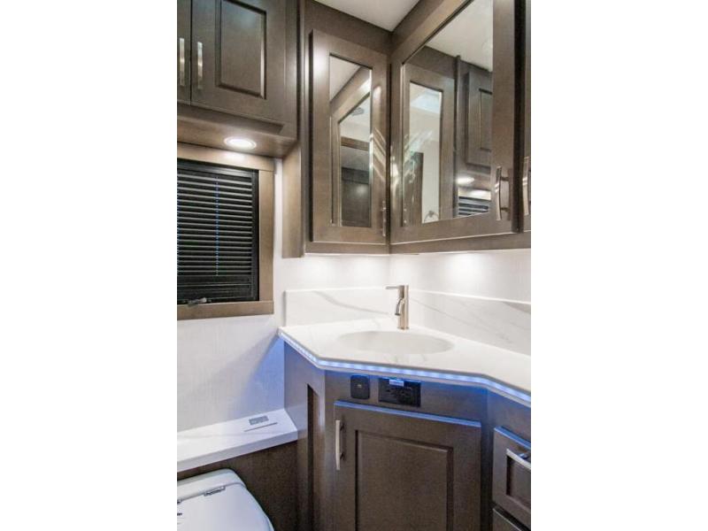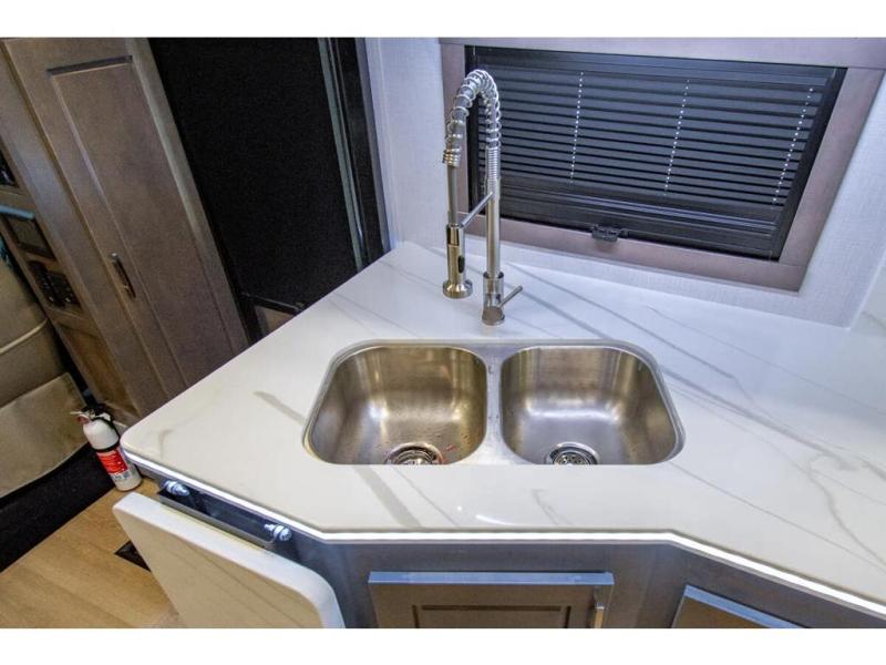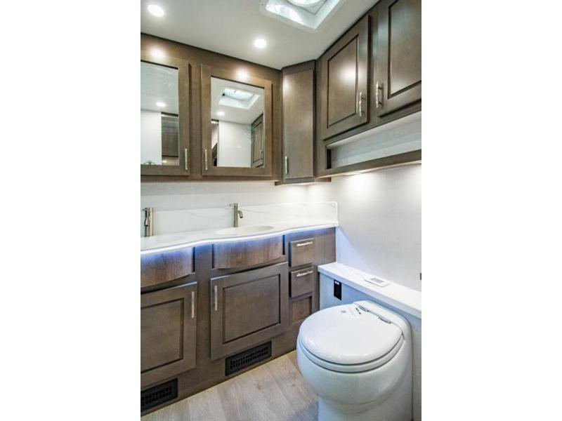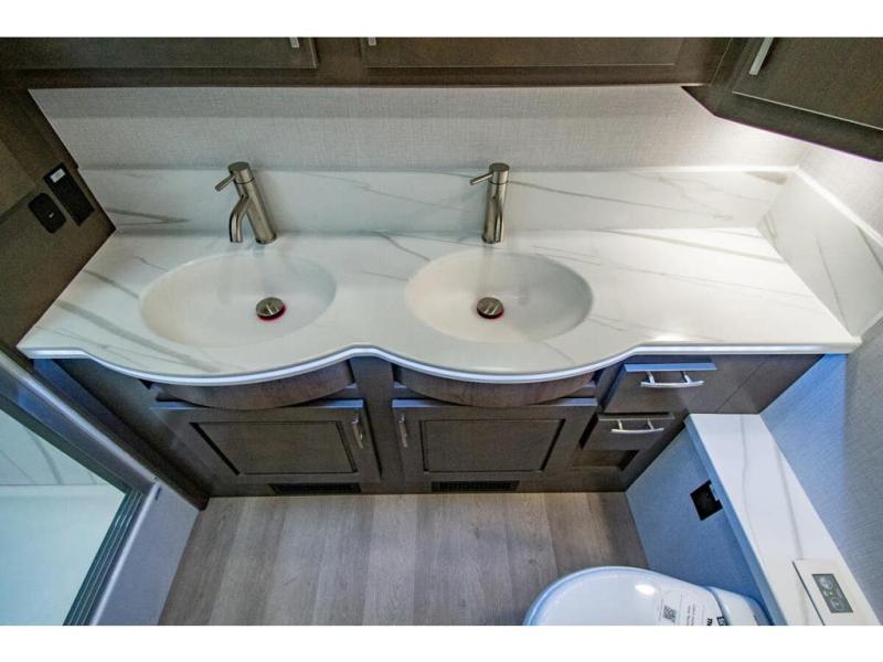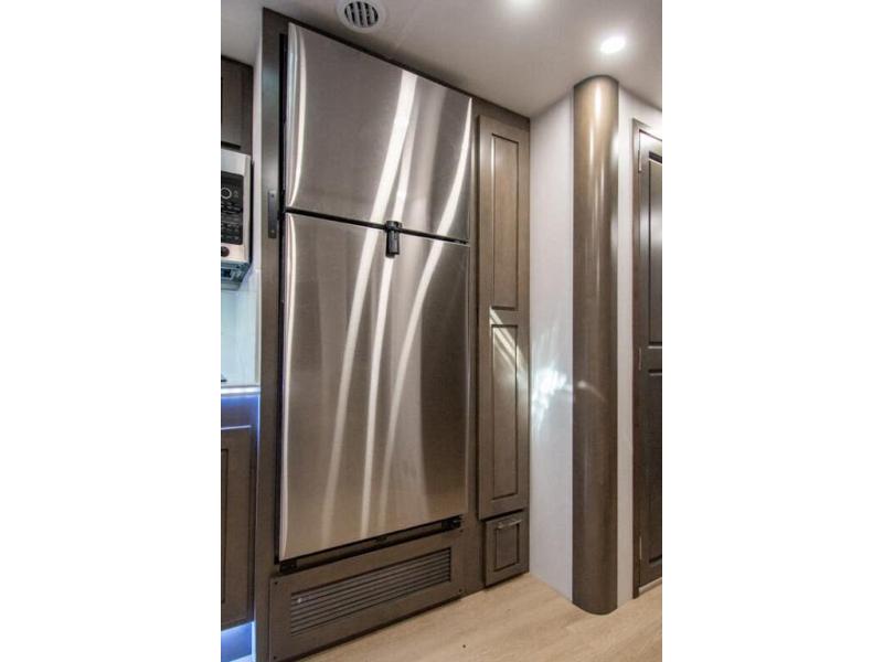 This RV is approximately 40 feet 9 inch in length with 3 slides, bath and a half and the new plus chassis with redesigned dash, Cummins L9 turbo diesel engine making 360HP & 1,150 ft.-lbs of torque, air brakes & C-Brake by Jacobs with high/medium/low braking dash switch.