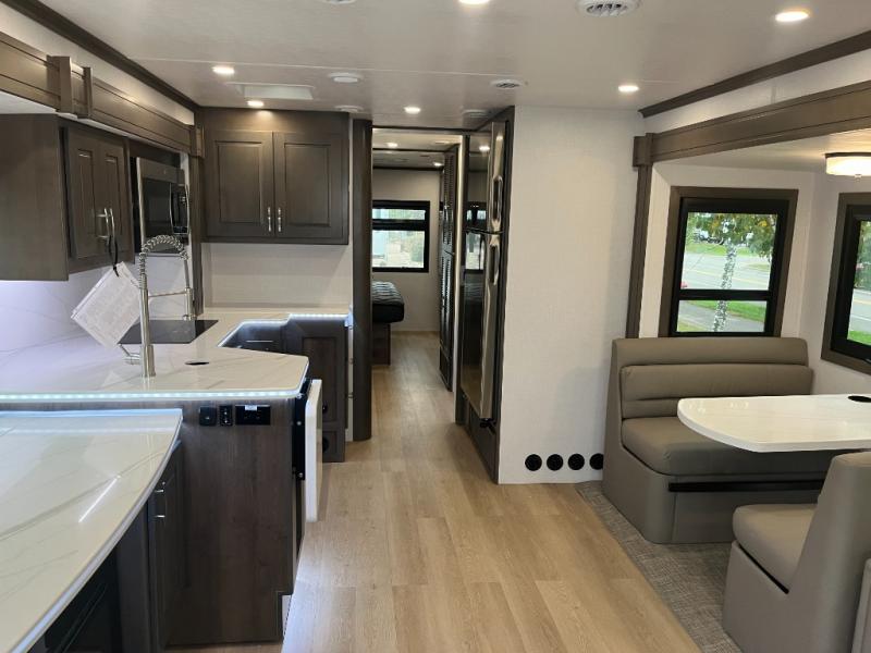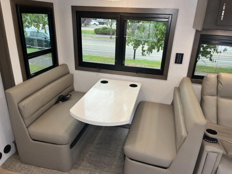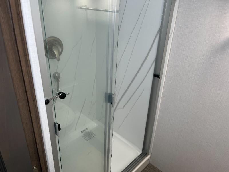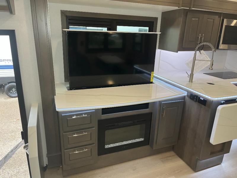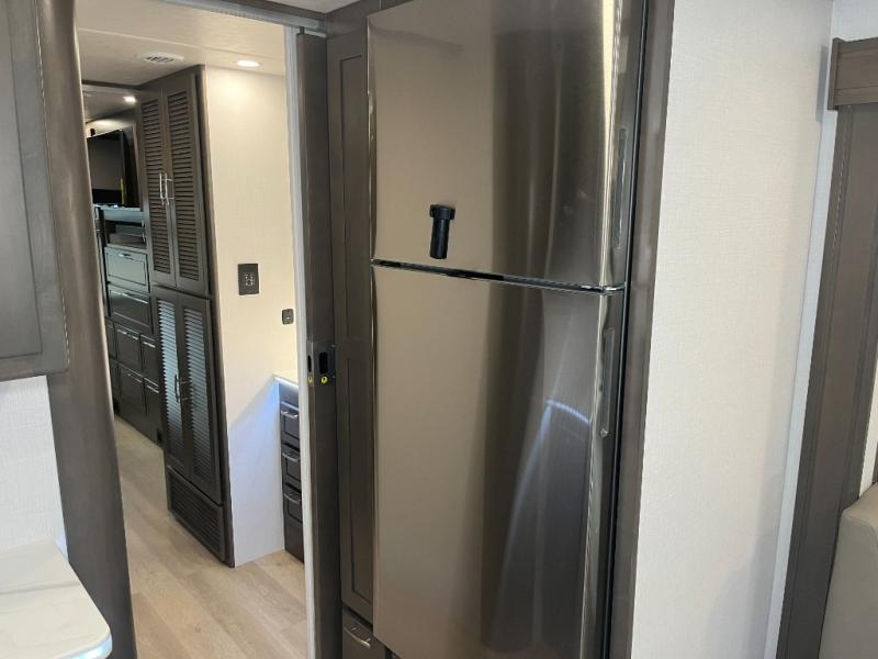 Nothing will stop you from experiencing first-class adventures with this DX3 Super C diesel motorhome! The king-size bed in the rear private bedroom will deliver the ultimate relaxation each night, and the bedroom 32" LED TV will let you watch your favorite movie before bed. Step foot into the Polymarm shower with a glass shower door each morning and welcome the morning sunlight through the shower skylight above. After you are all ready for the day, you can grab a quick breakfast from the pantry or spend a little more time preparing a full meal on the three-burner range.