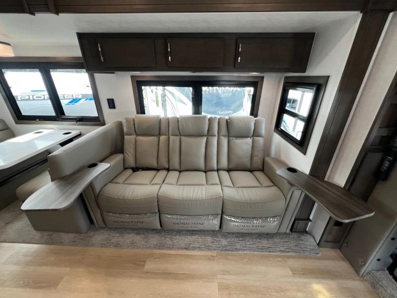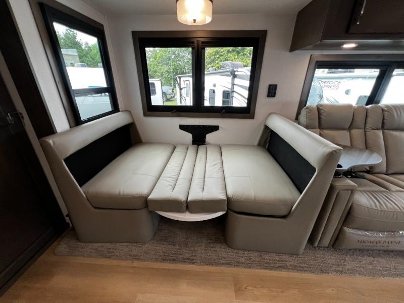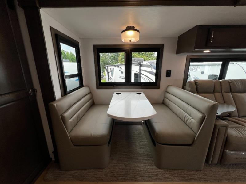 The Dream Dinette and tri-fold sleeper sofa offer versatile seating and sleeping options, while the cab-over bunk provides even more room for guests or kids.