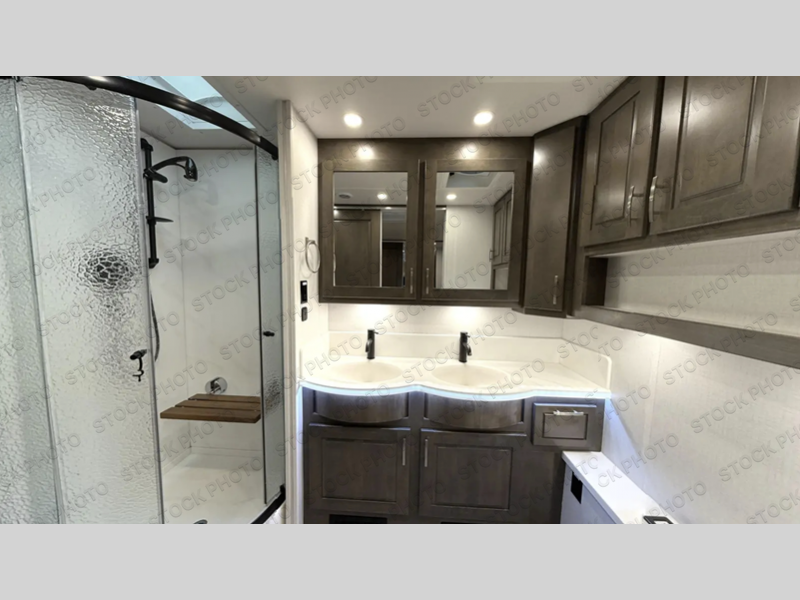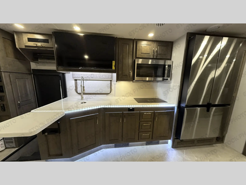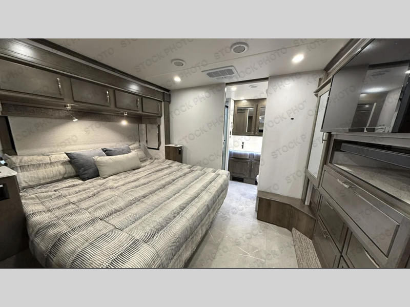 It's a clean decision with a bath and a half to take this motorhome on your next trip! The full rear bathroom has a radius shower to freshen up in, a closet to keep your towels close, and a dual sink vanity for two to get ready at once. It also creates a master suite with a king bed slide across from a dresser with a 32" TV and wardrobes on either side of it. Across from the half bathroom is a closet that is prepped to add an optional washer and dryer for clean clothes throughout your entire trip. You will have everything you need to prepare your best meals including a countertop extension. Enjoy your meals, play card games, and even transform into a sleeping space all with the Dream Dinette. The tri-fold sofa sleeper not only has seatbelts for traveling, but also can transform into a sleeping space too. You can also choose to add the optional bunk over cab for more sleeping space or switch out the sofa for the optional theaters seats!
