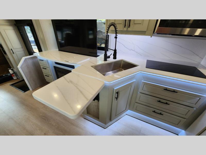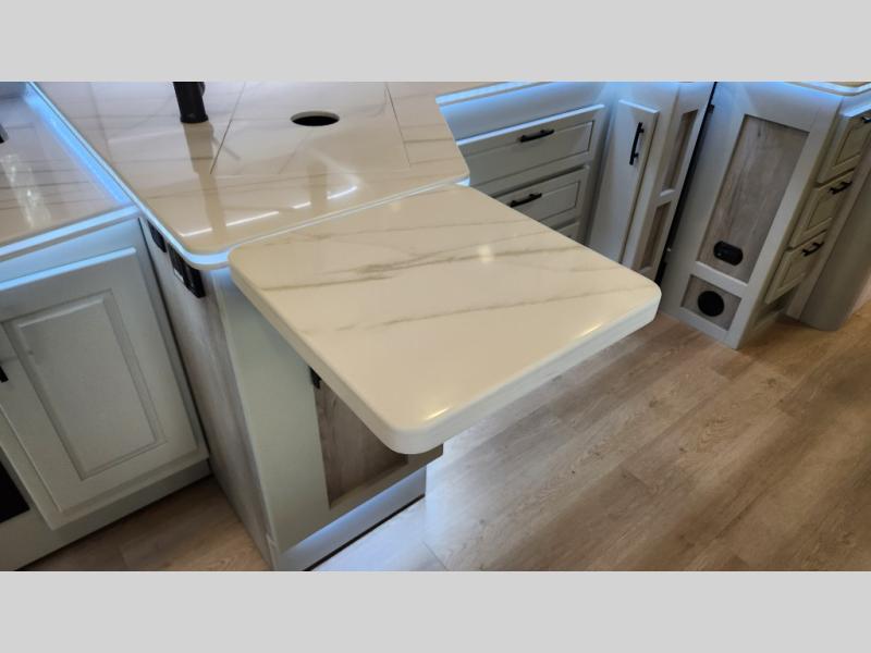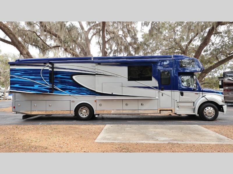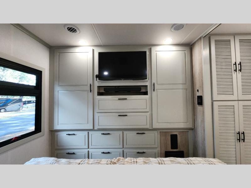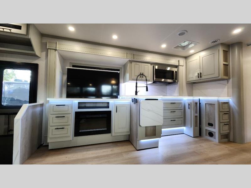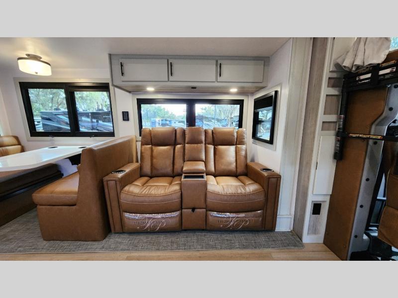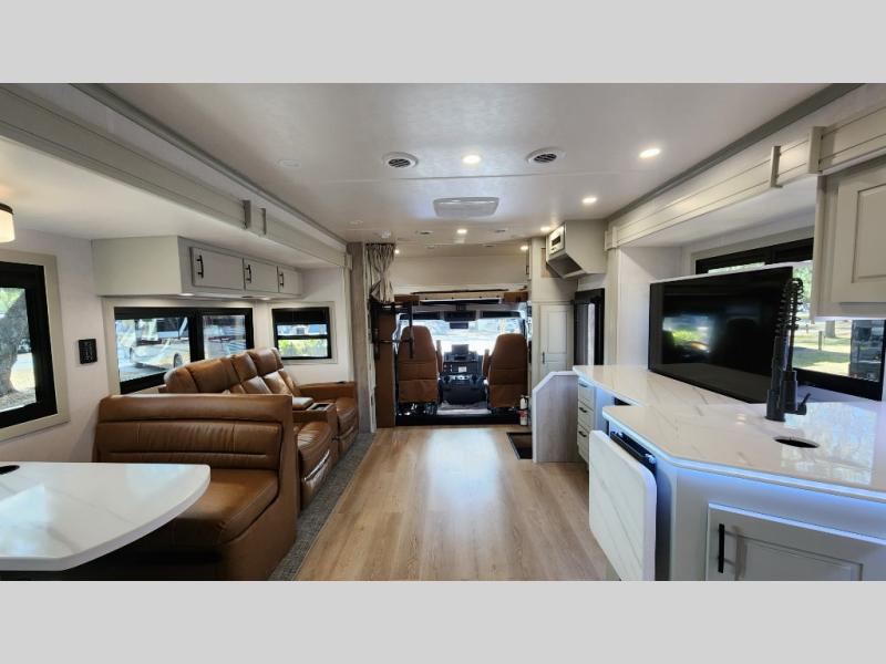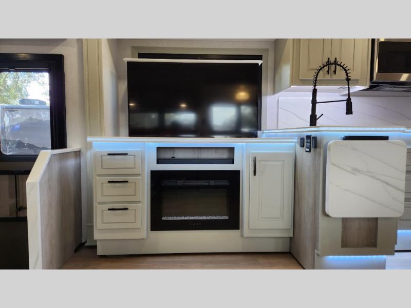 The Dynamax DynaQuest XL 3801TS delivers a true luxury-on-the-road experience, combining the strength of a Super C diesel with the comfort and feel of a high-end residential space. Inside, the triple-slide layout creates an open, inviting atmosphere with premium finishes, a fireplace, large TVs, and a king bedroom that make it feel like home wherever you travel. On the road, its Freightliner chassis and 450 HP Cummins engine provide confident power and towing capability, making long-distance travel smooth and stress-free. This coach is perfect for full-time RVers, extended travelers, or anyone looking to upgrade into a motorhome that offers both serious performance and upscale living without compromise.