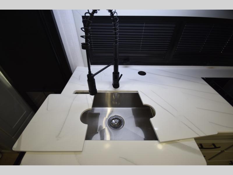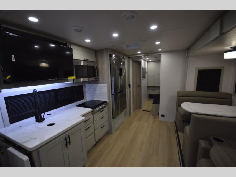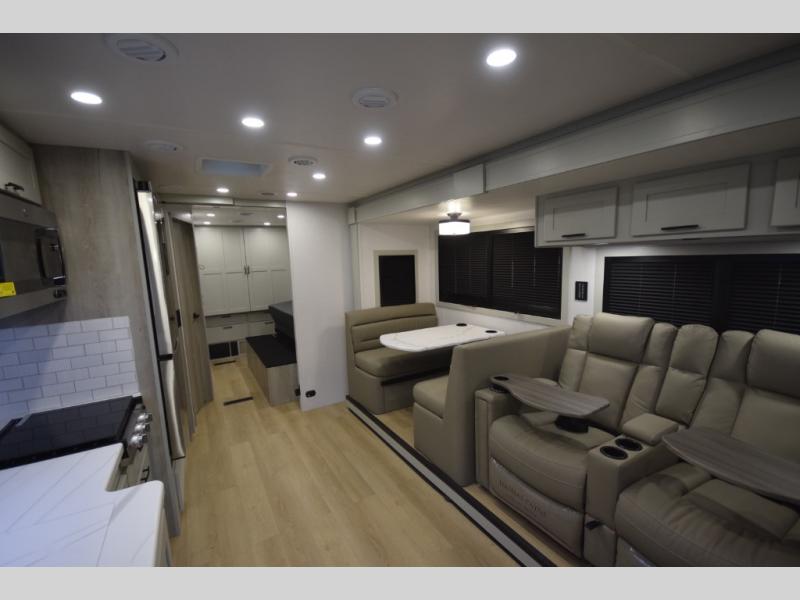 The Europa Super C diesel motorhome by Dynamax is built for those who crave durability, capability, and true luxury during every journey. Bold design meets premium craftsmanship with solid-surface countertops enhanced by LED edge lighting, premium vinyl flooring, and a sleek, contemporary interior. Enjoy the convenience of an on-demand water heater and an advanced multiplex wiring system with a touchscreen control center and Bluetooth smartphone integration.