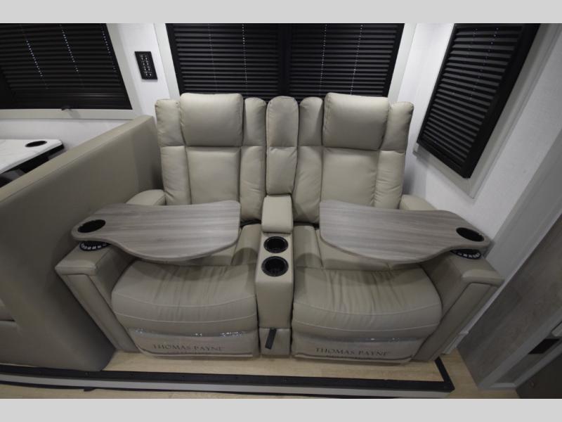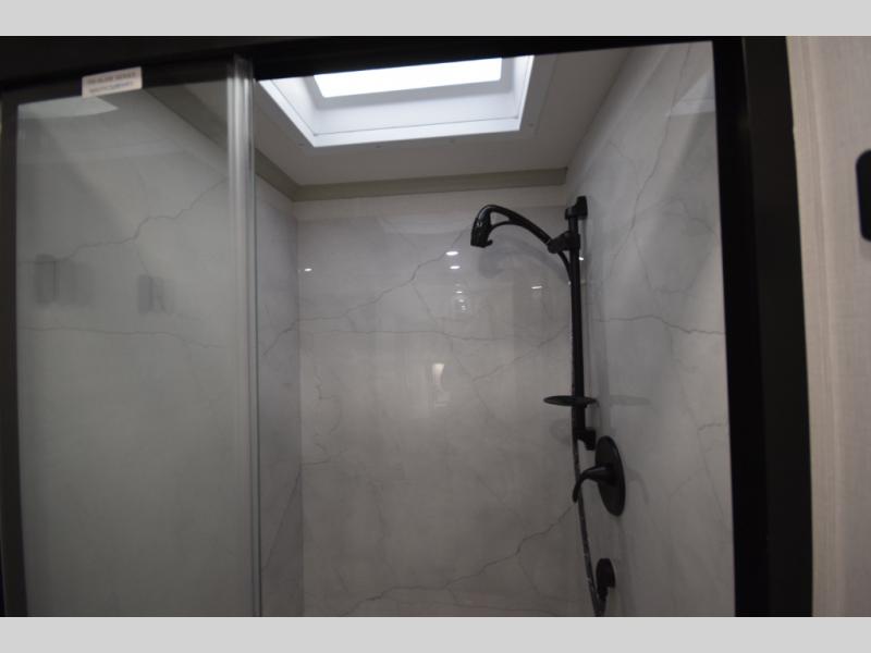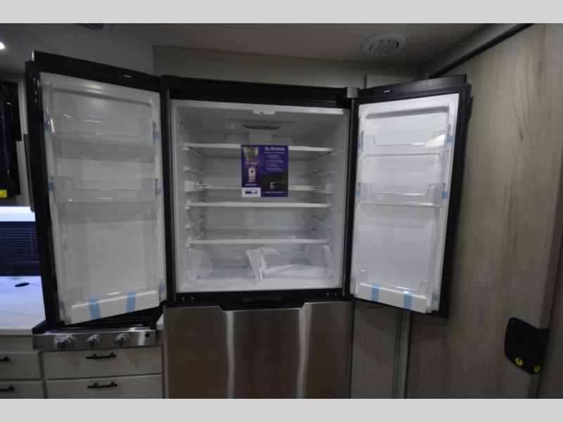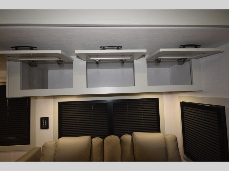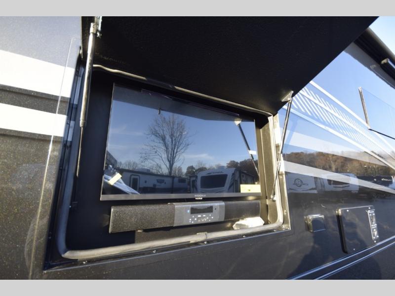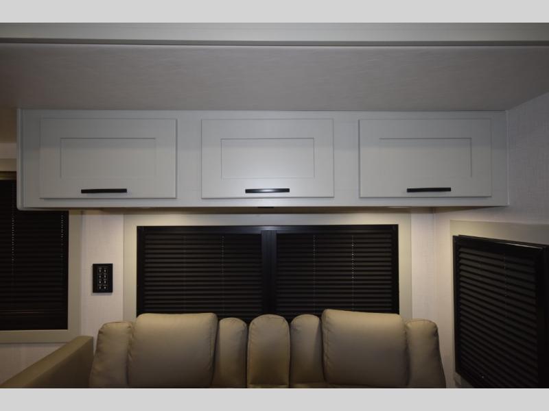 For off-grid explorers, dual 12V 8D AGM deep-cycle batteries and a 200-watt solar panel help power your adventures far beyond the campground. Bring along your favorite gear with the impressive 12,000 lb. trailer hitch, then relax under the armless patio awning with built-in LED lighting. Automatic four-point hydraulic leveling jacks and the striking full-body paint package complete this motorhome’s blend of rugged performance and high-end style.