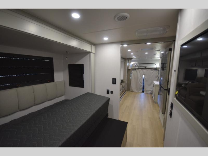 Get ready to elevate every road trip with the powerful, adventure-driven Europa Super C 31SS. Whether you're crossing the state or exploring the country, this motorhome turns every mile into a first-class experience. Once parked, the captain’s seats swivel to join the spacious living area, where friends and family can unwind on the plush sofa sleeper or gather around the booth dinette for games and conversation. A 39" LED Smart TV sits perfectly across from the sofa, creating an ideal setup for movie nights after a day of exploring.