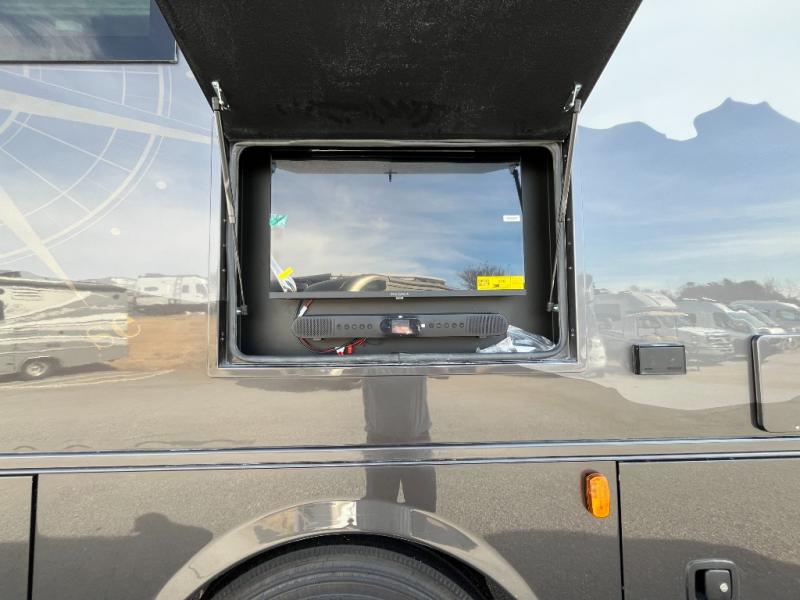 The Europa Super C diesel motorhome by Dynamax is coming to you with all the power, durability, and luxury you need for your adventurous lifestyle. You will love the solid surface countertop with LED edge lighting in the kitchen, the premium vinyl flooring throughout, and the clean, contemporary styling. The on-demand water heater is a luxury you won't want to travel without, and the multiplex wiring with a touch screen command center includes switch panels, and Bluetooth Smart Phone app control for ease of use. There are dual 12V 8D AGM deep-cycle maintenance-free house batteries and a single 200-watt solar panel to go off-grid if you choose, and the 12,000 lb. trailer hitch will allow you to bring along the off-road toys. Some of the exterior features that make this coach great are the armless patio awning with LED lighting, the automatic four-point hydraulic leveling jacks, and the eye-catching custom full-body paint package!