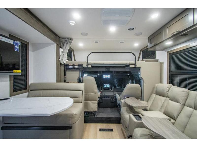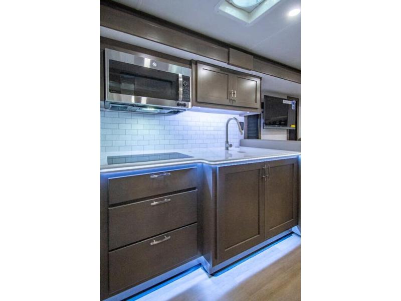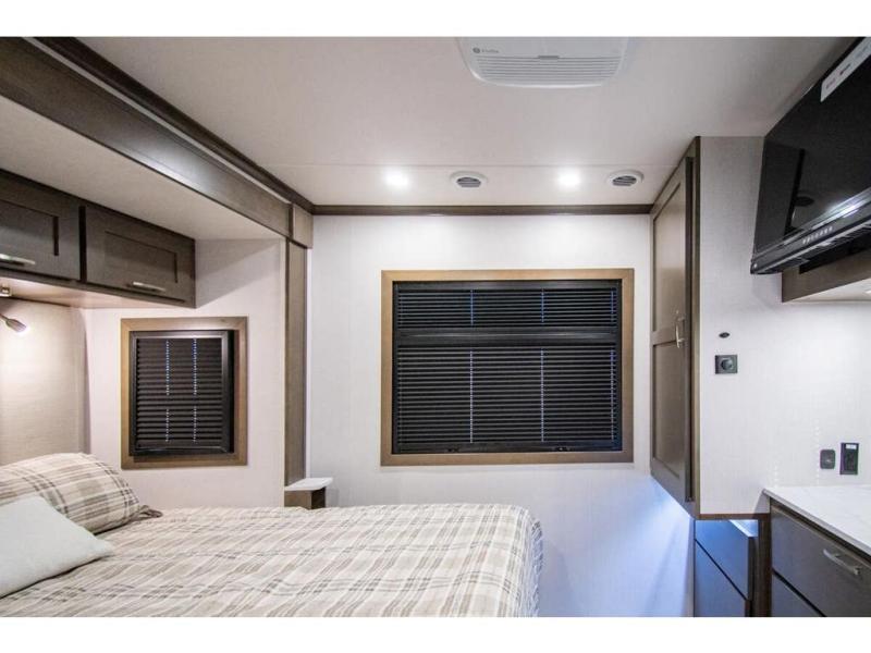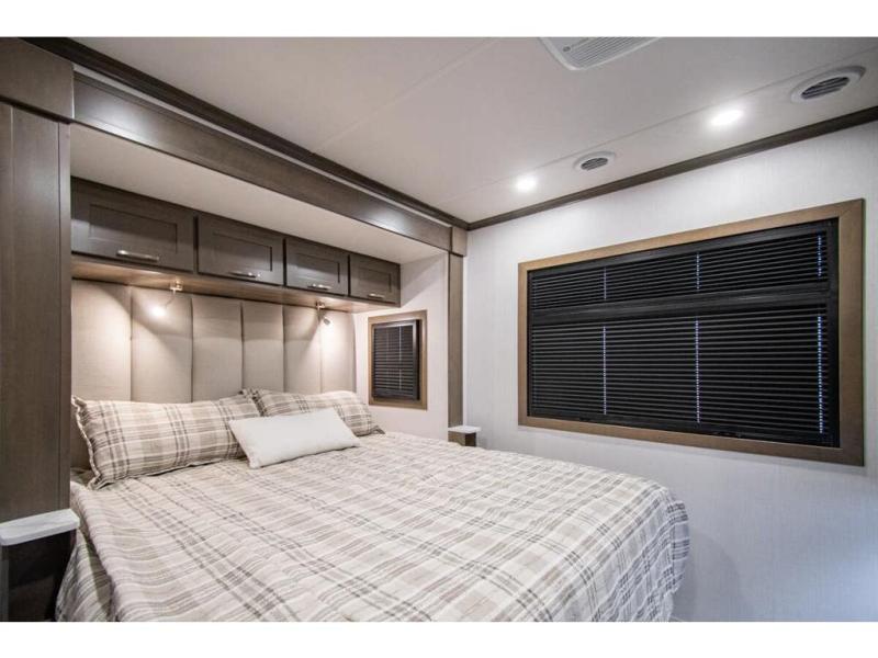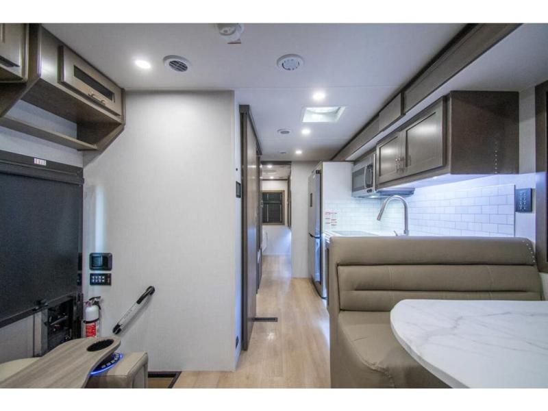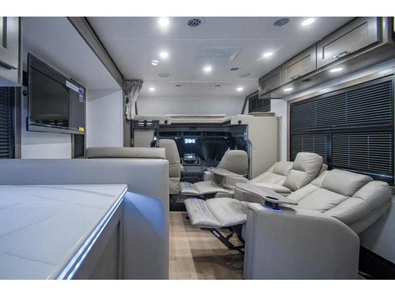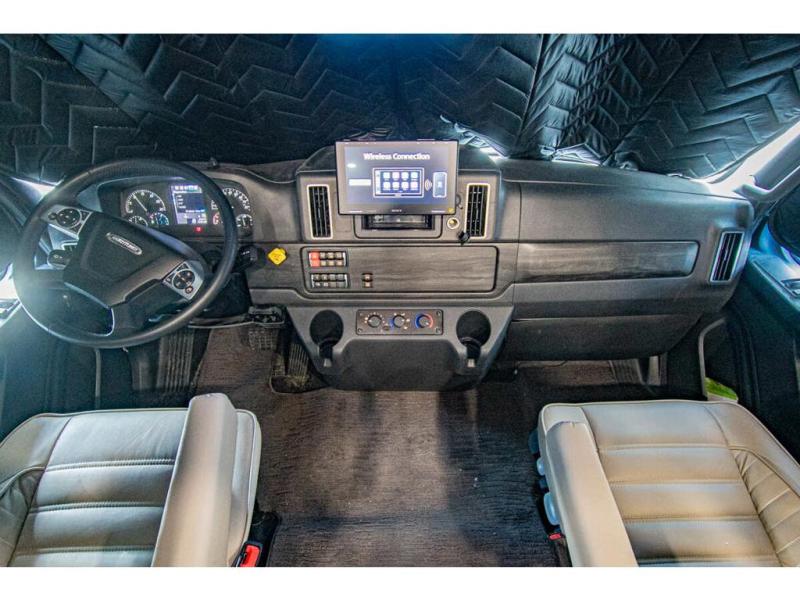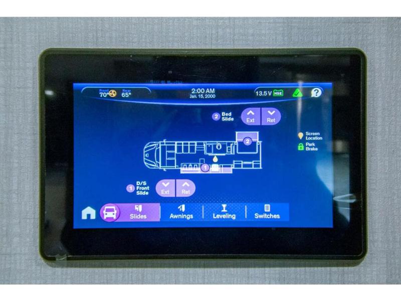 This RV is approximately 33 feet 5 inch in length with 2 slides, king sized bed and the Cummins 6.7L Turbo Diesel engine riding on a Freightliner chassis. This amazing Super C features a custom full body paint package, Diamond Shield paint protection, dark tinted frameless windows, rear rock guard, diesel generator, leatherette driver & passenger air ride seats, multiplex wiring with touch screen command center, on-demand water heater, aluminum wheels, touch screen dash infotainment system, and a host of other features that give the Europa a luxurious feel with the power and strength you expect from a Super C.