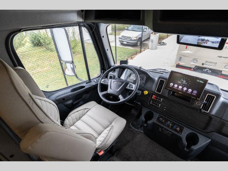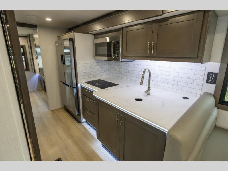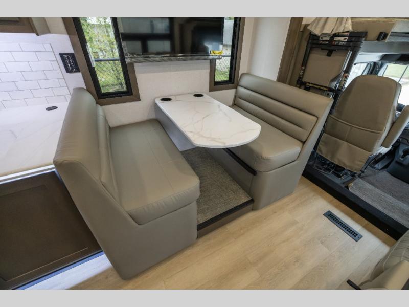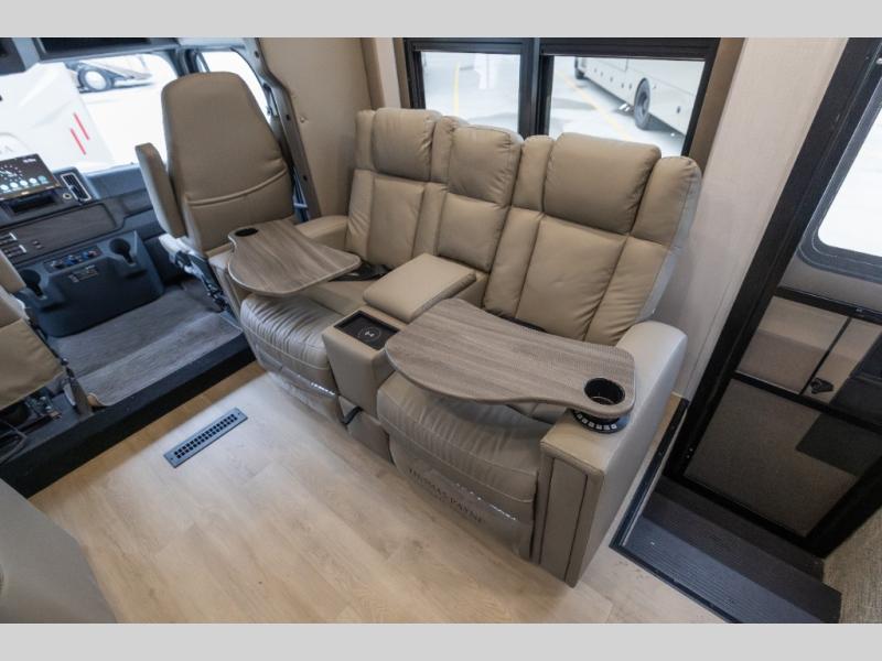 The Europa Super C diesel motorhome by Dynamax is coming to you with all the power, durability, and luxury you need for your adventurous lifestyle. You will love the solid surface countertop with LED edge lighting in the kitchen, the premium vinyl flooring throughout, and the clean, contemporary styling. The on-demand water heater is a luxury you won't want to travel without, and the multiplex wiring with a touch screen command center includes switch panels, and Bluetooth Smart Phone app control for ease of use. There are dual12V 8D AGM deep-cycle maintenance-free house batteries and a single 200-watt solar panel to go off-grid if you choose, and the 12,000 lb. trailer hitch will allow you to bring along the off-road toys. Some of the exterior features that make this coach great are the armless patio awning with LED lighting, the automatic four-point hydraulic leveling jacks, and the eye-catching custom full-body paint package!