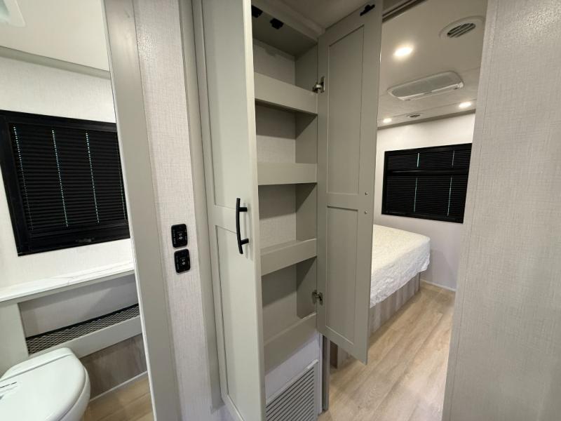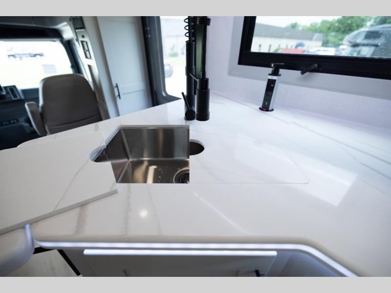 The Europa Super C diesel motorhome by Dynamax is coming to you with all the power, durability, and luxury you need for your adventurous lifestyle. You will love the solid surface countertop with LED edge lighting in the kitchen, the premium vinyl flooring throughout, and the clean, contemporary styling. The on-demand water heater is a luxury you won't want to travel without, and the multiplex wiring with a touch screen command center includes switch panels, and Bluetooth Smart Phone app control for ease of use. There are dual12V 8D AGM deep-cycle maintenance-free house batteries and a single 200-watt solar panel to go off-grid if you choose, and the 12,000 lb. trailer hitch will allow you to bring along the off-road toys. Some of the exterior features that make this coach great are the armless patio awning with LED lighting, the automatic four-point hydraulic leveling jacks, and the eye-catching custom full-body paint package!
