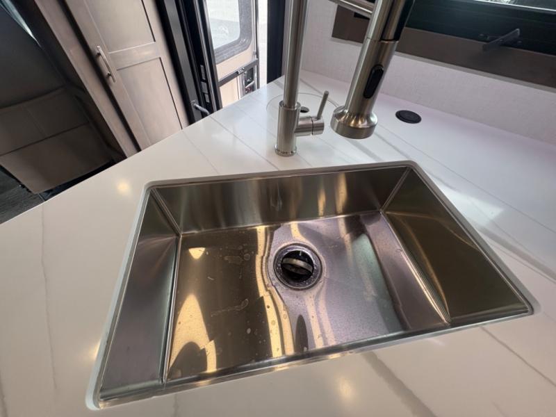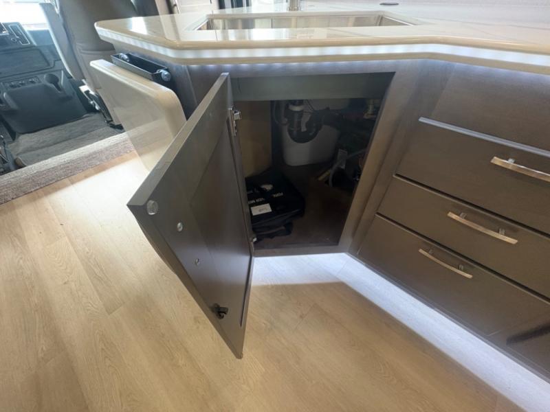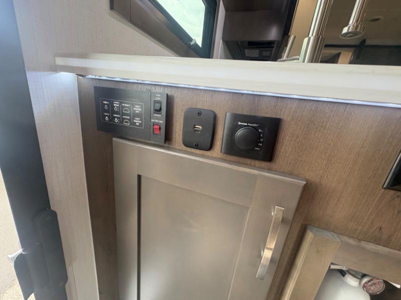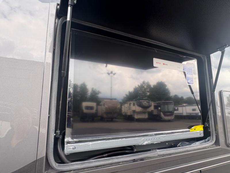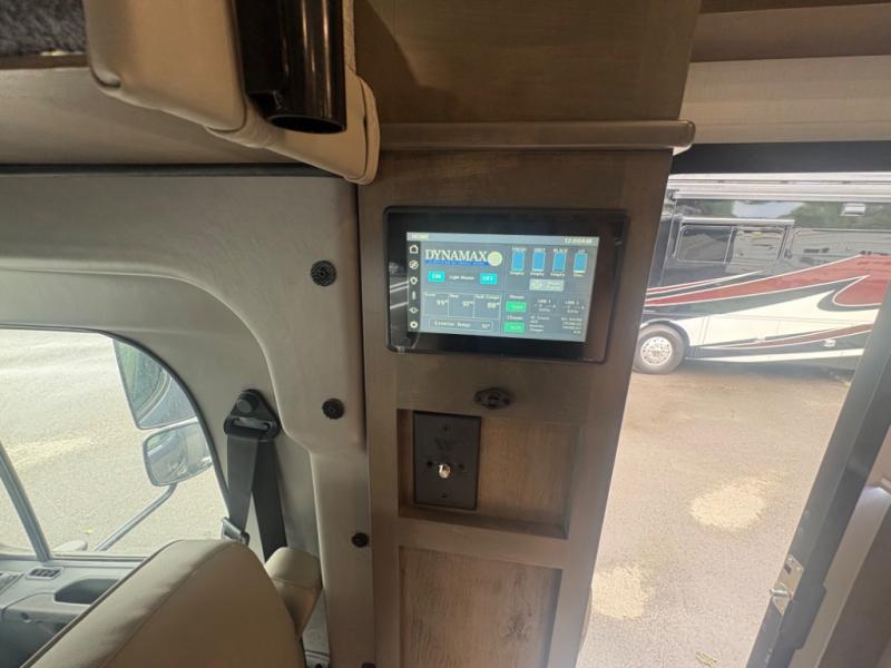 The Europa Super C diesel motorhome by Dynamax is coming to you with all the power, durability, and luxury you need for your adventurous lifestyle. You will love the solid surface countertop with LED edge lighting in the kitchen, the premium vinyl flooring throughout, and the clean, contemporary styling. The on-demand water heater is a luxury you won't want to travel without, and the multiplex wiring with a touch screen command center includes switch panels, and Bluetooth Smart Phone app control for ease of use. There are dual 12V 8D AGM deep-cycle maintenance-free house batteries and a single 200-watt solar panel to go off-grid if you choose, and the 12,000 lb. trailer hitch will allow you to bring along the off-road toys. Some of the exterior features that make this coach great are the armless patio awning with LED lighting, the automatic four-point hydraulic leveling jacks, and the eye-catching custom full-body paint package!