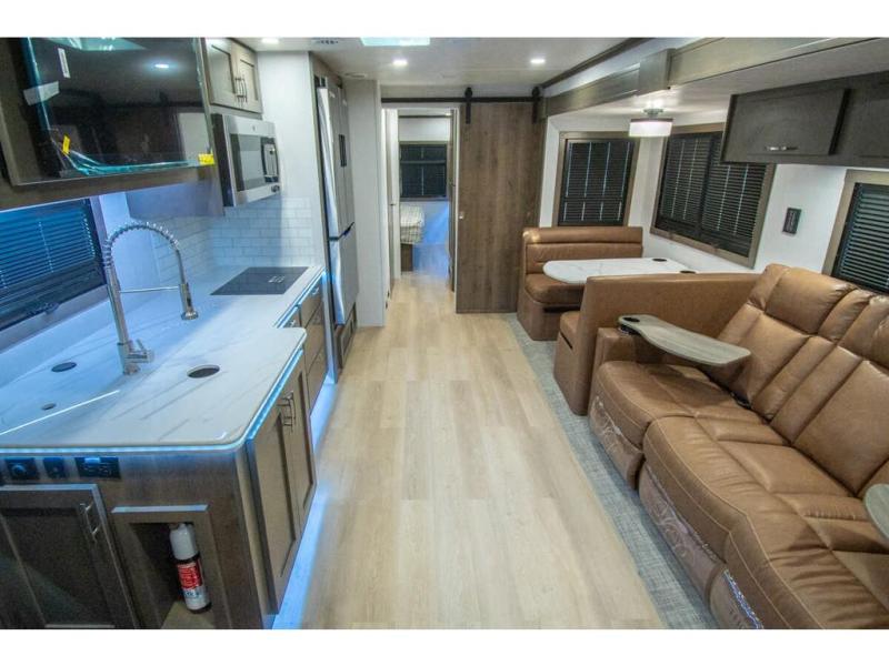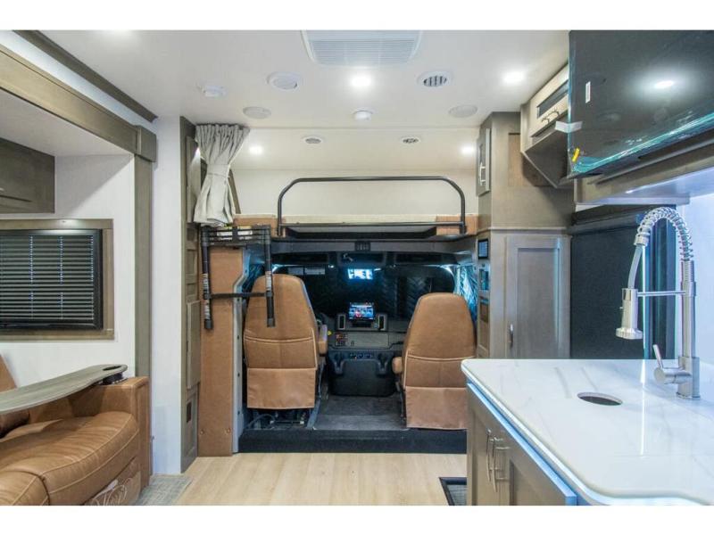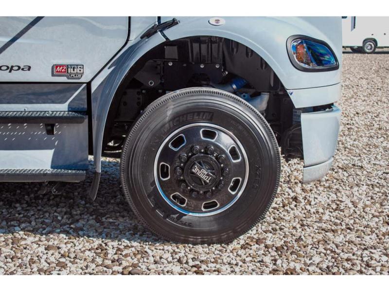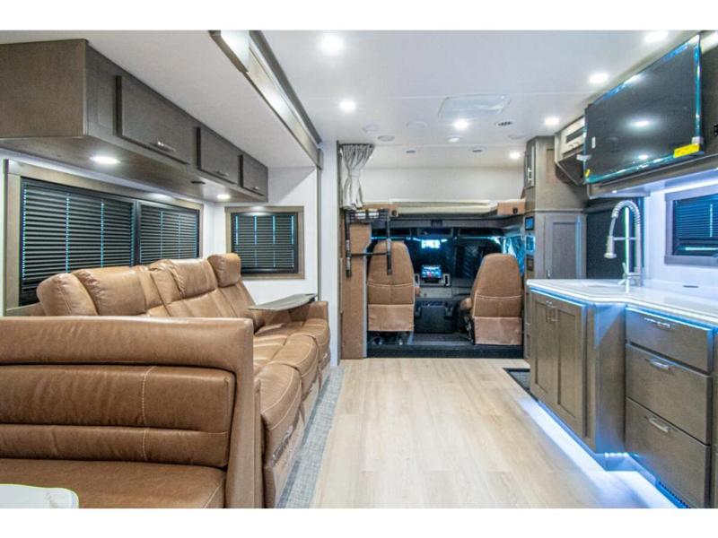 This RV is a magnificent example of luxury and power in the realm of Class C diesel motorhomes. Measuring approximately 36 feet 8 inches in length, this model is designed to elevate your travel experience with its exceptional features such as having 2 slides and a king sized bed and stunning design. Built on a robust Freightliner M2 chassis, the Europa houses a formidable Cummins 6.7L Turbo Diesel engine, delivering 360 horsepower and an impressive 800 ft.-lbs. of torque. The dual air conditioning units provide comfort in any climate, making this RV perfect for any adventure, wherever the road may take you. The Europa 34SS comes equipped with numerous high-end features designed for both functionality and comfort.