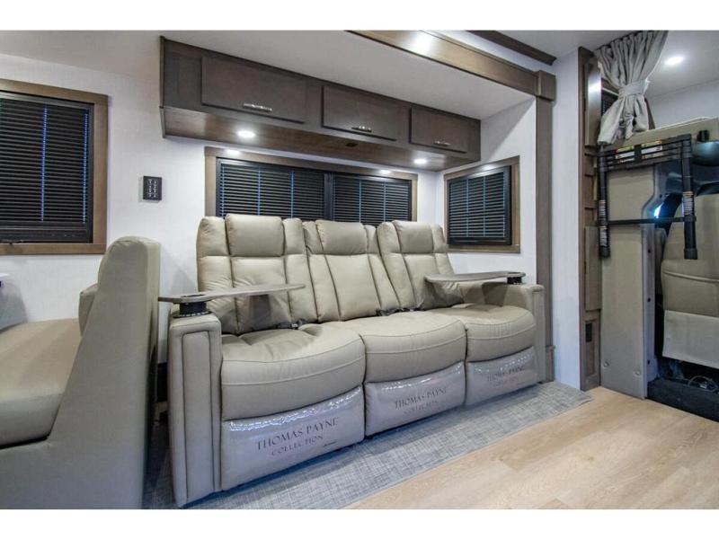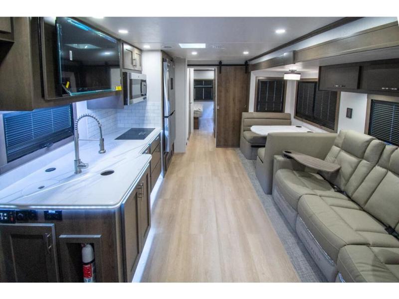 This RV is a magnificent example of luxury and power in the realm of Class C diesel motorhomes. Measuring approximately 36 feet 8 inches in length, this model is designed to elevate your travel experience with its exceptional features such as having 2 slides and a king sized bed and stunning design. Built on a robust Freightliner M2 chassis, the Europa houses a formidable Cummins 6.7L Turbo Diesel engine, delivering 360 horsepower and an impressive 800 ft.-lbs. of torque. The dual air conditioning units provide comfort in any climate, making this RV perfect for any adventure, wherever the road may take you. The Europa 34SS comes equipped with numerous high-end features designed for both functionality and comfort.