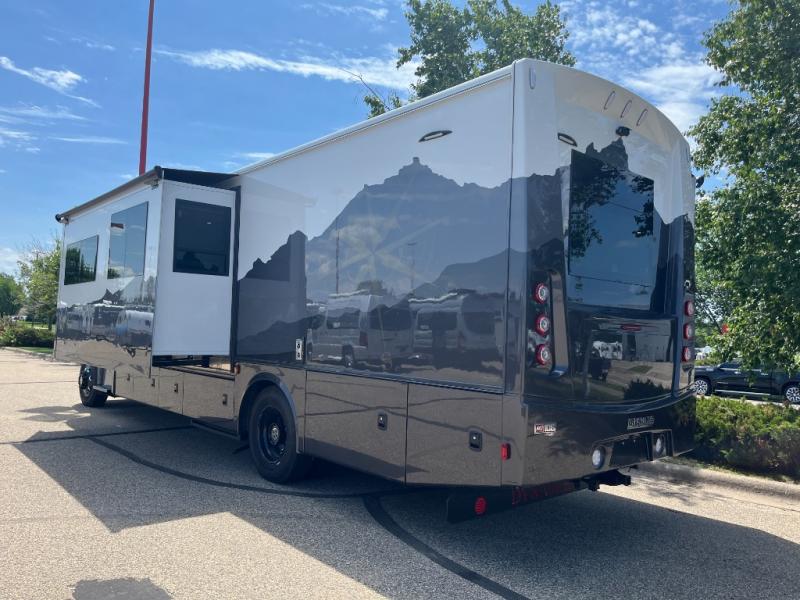 The Europa Super C diesel motorhome by Dynamax is coming to you with all the power, durability, and luxury you need for your adventurous lifestyle. You will love the solid surface countertop with LED edge lighting in the kitchen, the premium vinyl flooring throughout, and the clean, contemporary styling. The on-demand water heater is a luxury you won't want to travel without, and the multiplex wiring with a touch screen command center includes switch panels, and Bluetooth Smart Phone app control for ease of use. There are dual 12V 8D AGM deep-cycle maintenance-free house batteries and a single 200-watt solar panel to go off-grid if you choose, and the 12,000 lb. trailer hitch will allow you to bring along the off-road toys. Some of the exterior features that make this coach great are the armless patio awning with LED lighting, the automatic four-point hydraulic leveling jacks, and the eye-catching custom full-body paint package!