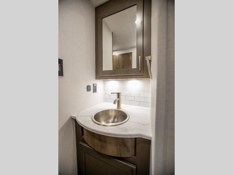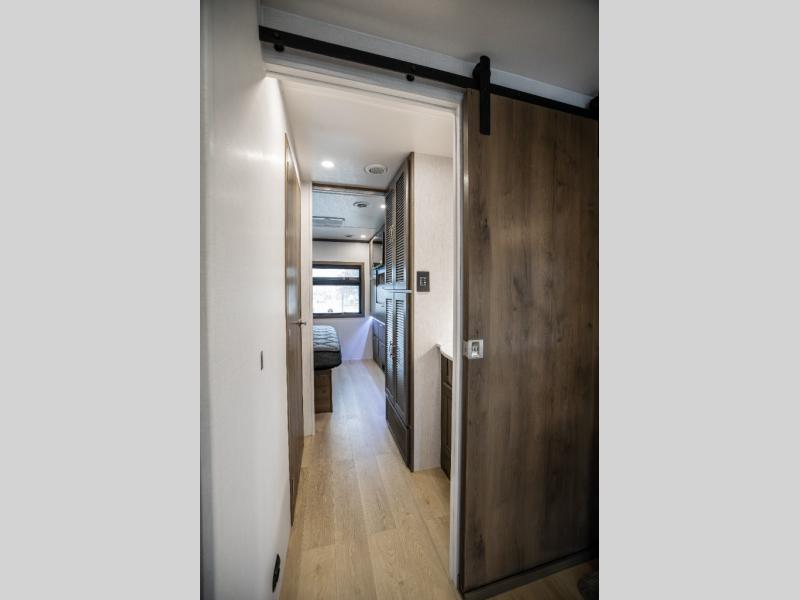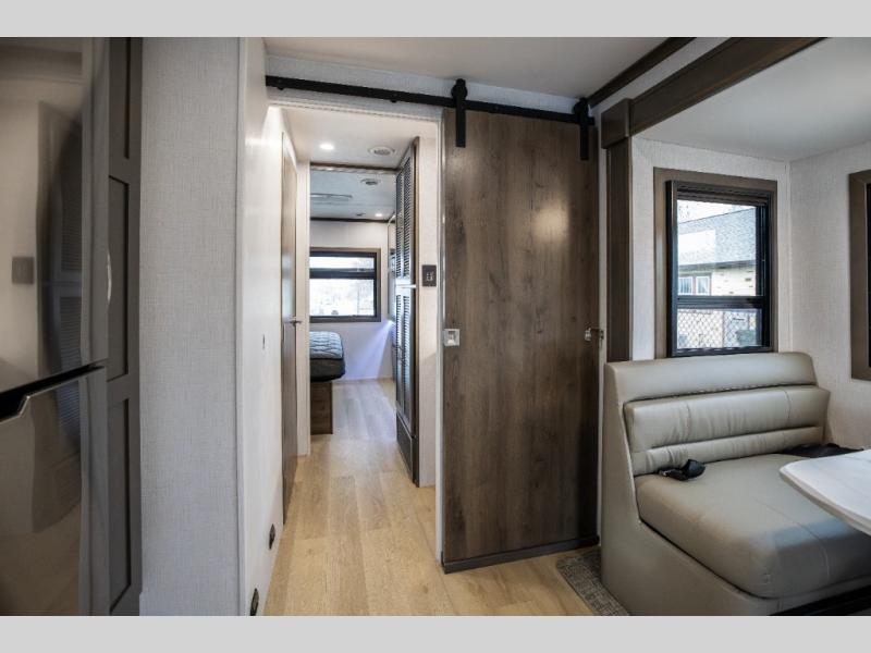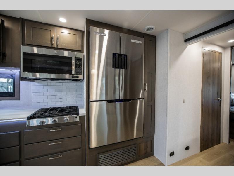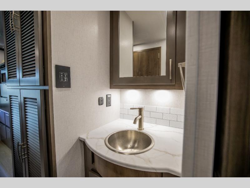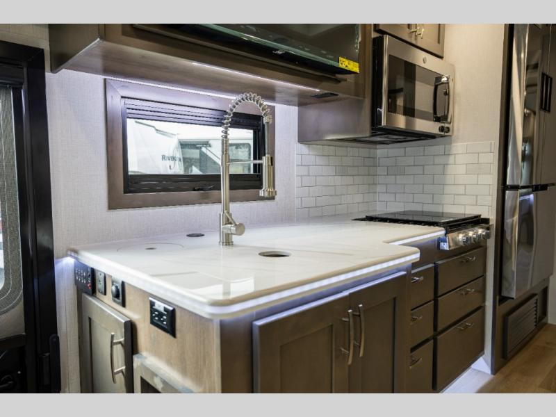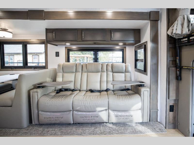 This double slide out coach is perfect for any vacation. Once you arrive at your destination, you can relax on the tri-fold sleeper sofa or play a game at the dream dinette. There is also a 39" LED Smart TV across from the sofa for easy viewing. You will enjoy cooking in the kitchen on the three-burner range or in the convection microwave, plus there is a 15 cu. ft. 12V 3-door compressor-driven refrigerator for perishables. This Europa also features a rear master suite with a king bed slide out, a 32" LED Smart TV, and dual bedroom wardrobes. The full bath includes washer/dryer prep and a hallway sink for additional convenience. If you need more space, consider the cab-over bunk option to sleep more guests!