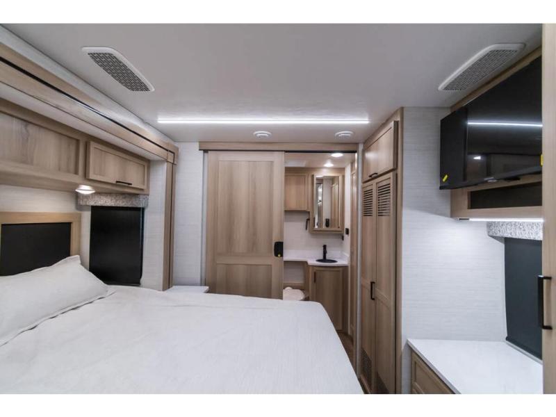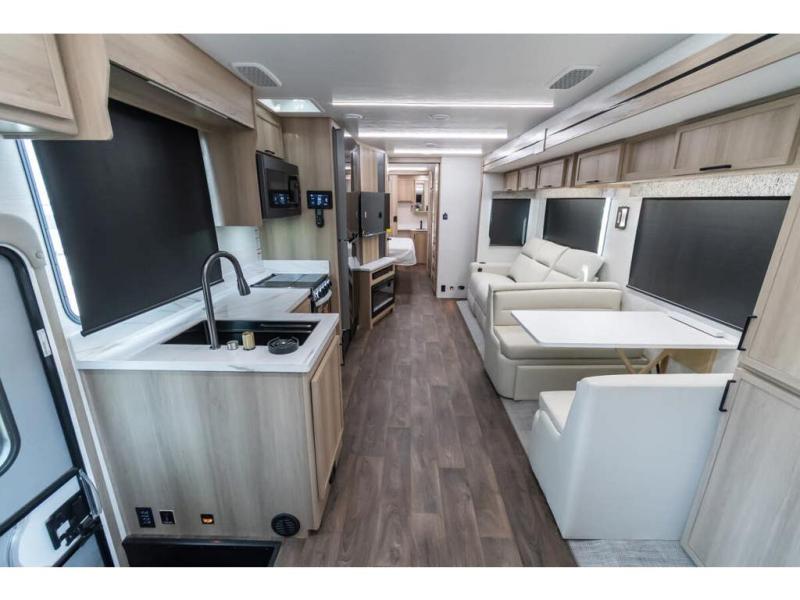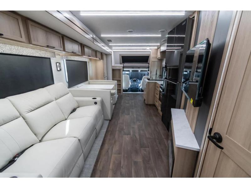 This RV is a magnificent example of luxury and power in the realm of Class C diesel motorhomes. This model is designed to elevate your travel experience with its exceptional features such as having 2 slides and a king sized bed and stunning design. Built on a robust Freightliner S2RV Plus chassis, the Europa houses a formidable Cummins 6.7L Turbo Diesel engine, delivering 360 horsepower and an impressive 800 ft.-lbs. of torque. The dual air conditioning units provide comfort in any climate, making this RV perfect for any adventure, wherever the road may take you. Additional features include the SACHS Front & Rear Shock Absorbers, rear sway bar, 32" LED Smart TV in the bedroom and USB Charging Ports.