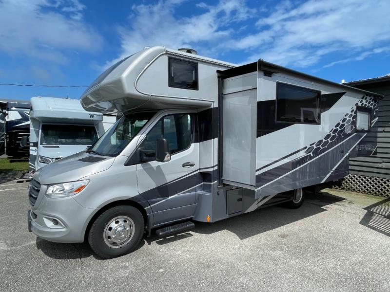 Each one of these Dynamax isata 3 Class C diesel motorhomes were designed to last for years of fun with composite exterior fiberglass with no exterior wood, aluminum-framed roof trusses, and composite flooring substrate. The 2.0L l-4 turbo diesel engine will power your adventures, and the Mercedes-Benz Sprinter chassis provides a durable foundation. There is an MBUX 10.25" infotainment system and a quad-view camera system that will let the driver navigate the open road like a pro, and the added safety features are sure to bring you peace of mind. Outside, you'll be wowed by the custom full-body paint package with front-end Diamond Shield paint protection, plus there are exterior speakers, an armless patio awning with LED lights, and seamless rotocast storage compartments for your gear! Each model also includes many interior comforts to make you feel right at home, like the premium vinyl flooring throughout, hardwood craftsman-style cabinetry, solid surface countertops with LED edge lighting and backsplash, and the list goes on!