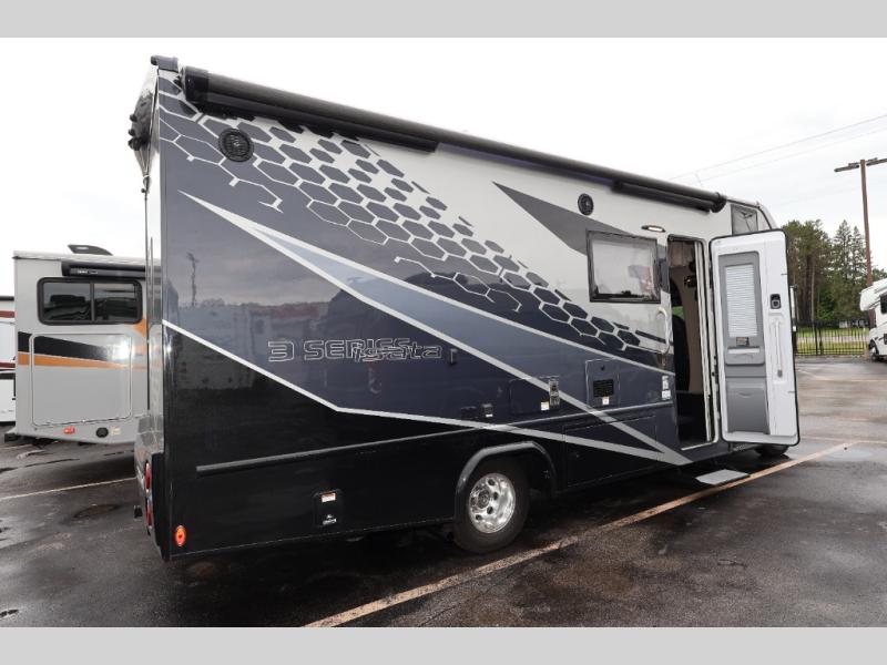 Each one of these Dynamax isata 3 Class C diesel motorhomes were designed to last for years of fun with composite exterior fiberglass with no exterior wood, aluminum-framed roof trusses, and composite flooring substrate. The 2.0L l-4 turbo diesel engine will power your adventures, and the Mercedes-Benz Sprinter chassis provides a durable foundation. There is an MBUX 10.25" infotainment system and a quad-view camera system that will let the driver navigate the open road like a pro, and the added safety features are sure to bring you peace of mind. Outside, you'll be wowed by the custom full-body paint package with front-end Diamond Shield paint protection, plus there are exterior speakers, an armless patio awning with LED lights, and seamless rotocast storage compartments for your gear! Each model also includes many interior comforts to make you feel right at home, like the premium vinyl flooring throughout, hardwood craftsman-style cabinetry, solid surface countertops with LED edge lighting and backsplash, and the list goes on!