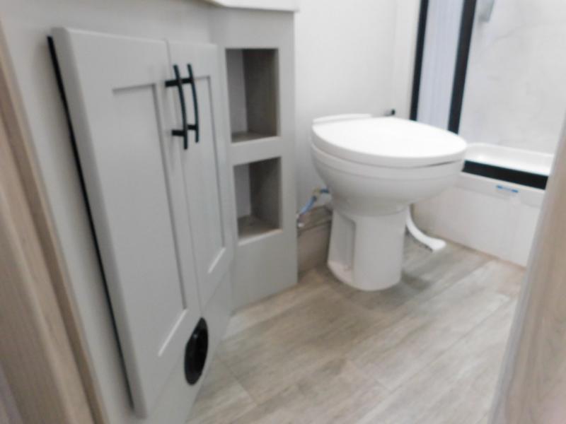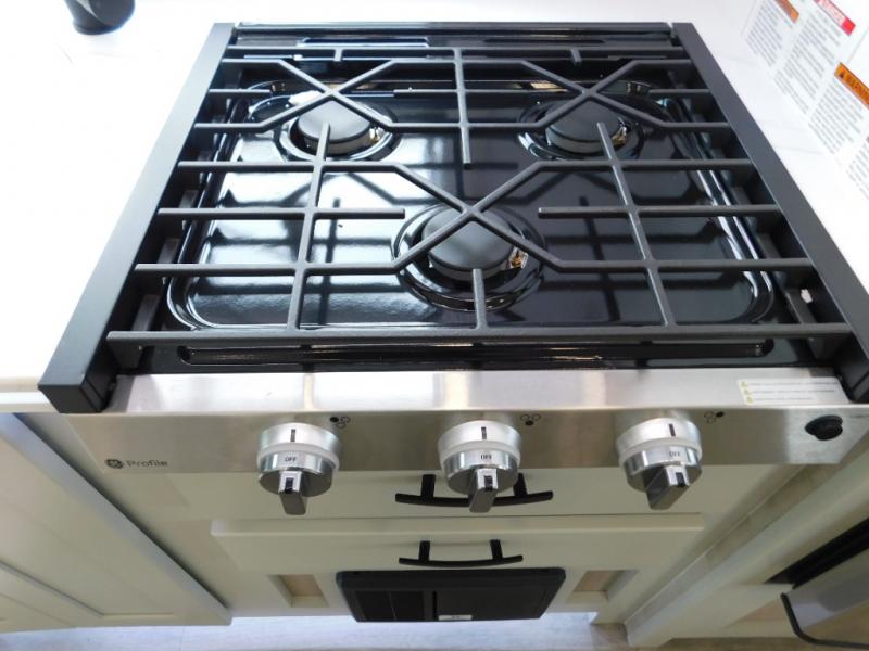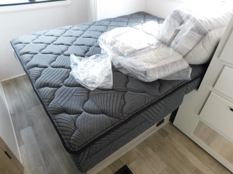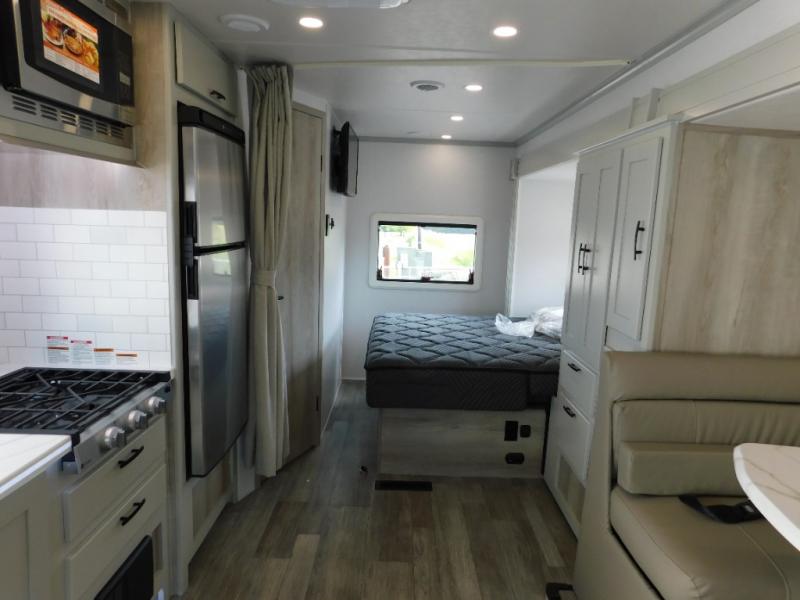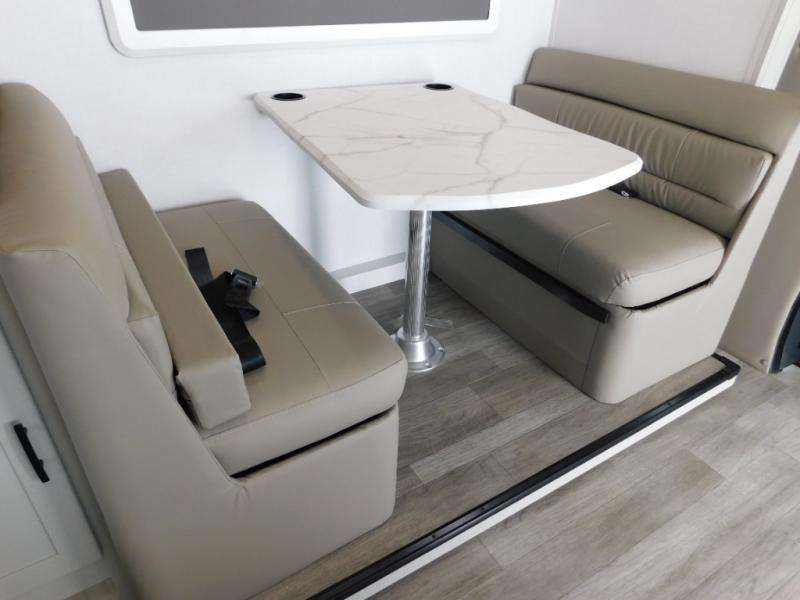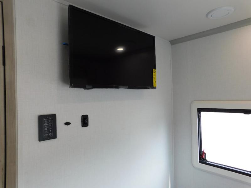 Take this motorhome on your greatest adventures yet! Start each morning feeling well rested after sleeping on the corner queen bed then head to the rear corner bathroom to freshen up in the shower with an Oxygenics body spa RV shower head and a skylight above for added headroom and natural lighting. Now that you're ready for the day, you can grab some eggs from the 8 cu. ft. two-door compressor-driven refrigerator and fry them up on the three burner cooktop, then enjoy them at the booth dinette. The kitchen also has a countertop extension for more meal prepping space and a convection microwave. This unit also includes a living room 32" LED Smart TV and a 32" LED smart TV across from the bed. You could even switch things up by replacing the booth dinette with an optional 3-seat power recliner, and adding a cab over bunk option!