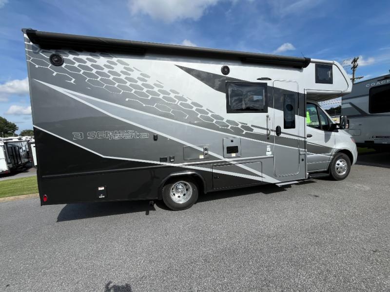 Each one of these Dynamax isata 3 Class C diesel motorhomes were designed to last for years of fun with composite exterior fiberglass with no exterior wood, aluminum-framed roof trusses, and composite flooring substrate. The 2.0L l-4 turbo diesel engine will power your adventures, and the Mercedes-Benz Sprinter chassis provides a durable foundation. There is an MBUX 10.25" infotainment system and a quad-view camera system that will let the driver navigate the open road like a pro, and the added safety features are sure to bring you peace of mind. Outside, you'll be wowed by the custom full-body paint package with front-end Diamond Shield paint protection, plus there are exterior speakers, an armless patio awning with LED lights, and seamless rotocast storage compartments for your gear! Each model also includes many interior comforts to make you feel right at home, like the premium vinyl flooring throughout, hardwood craftsman-style cabinetry, solid surface countertops with LED edge lighting and backsplash, and the list goes on!