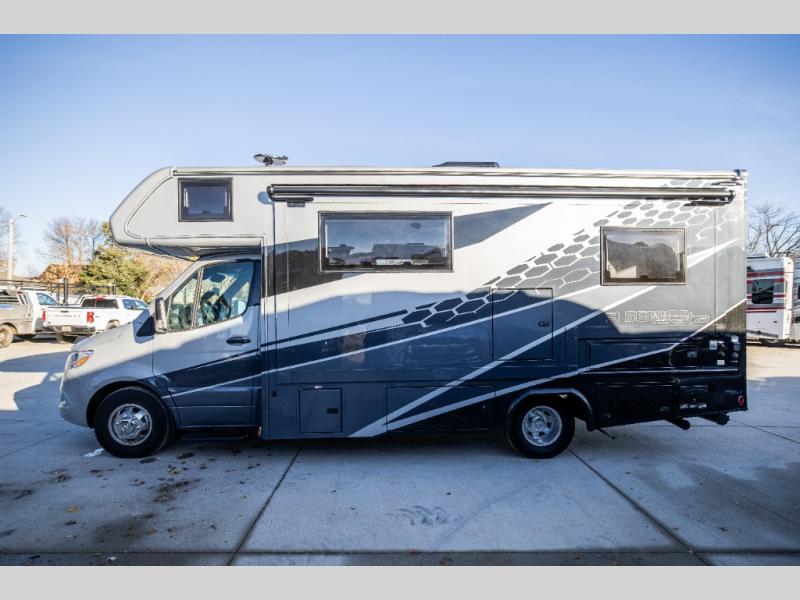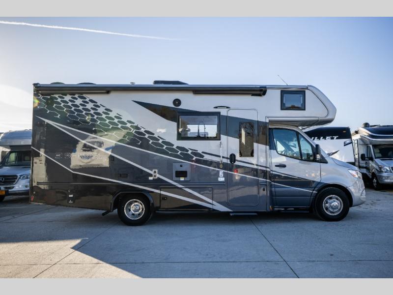 Each one of these Dynamax Isata 3 Class C diesel motorhomes were designed to last with composite exterior fiberglass with no exterior wood, aluminum-framed roof trusses, and composite flooring substrate. The 2.0L l-4 turbo diesel engine will power your adventures, and the Mercedes-Benz Sprinter chassis provides a durable foundation. There is an MBUX 10.25" infotainment system and a quad-view camera system that will let the driver navigate the open road like a pro, and the added safety features are sure to bring you peace of mind. Outside, you'll be wowed by the custom full-body paint package with front-end Diamond Shield paint protection, plus there are exterior speakers, an armless patio awning with LED lights, and seamless rotocast storage compartments for your gear! Each model also includes many interior comforts to make you feel right at home, like the premium vinyl flooring throughout, hardwood craftsman-style cabinetry, solid surface countertops with LED edge lighting and backsplash, and the list goes on!