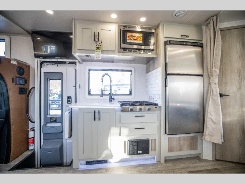 Take this motorhome on your greatest adventures yet! Start each morning feeling well rested after sleeping on the corner queen bed then head to the rear corner bathroom to freshen up in the shower with an Oxygenics body spa RV shower head and a skylight above for added headroom and natural lighting. Now that you're ready for the day, you can grab some eggs from the 8 cu. ft. two-door compressor-driven refrigerator and fry them up on the three burner cooktop, then enjoy them at the booth dinette. The kitchen also has a countertop extension for more meal prepping space and a convection microwave. This unit also includes a living room 32" LED Smart TV and a 32" LED smart TV across from the bed. You could even switch things up by replacing the booth dinette with an optional 3-seat power recliner, and adding a cab over bunk option!