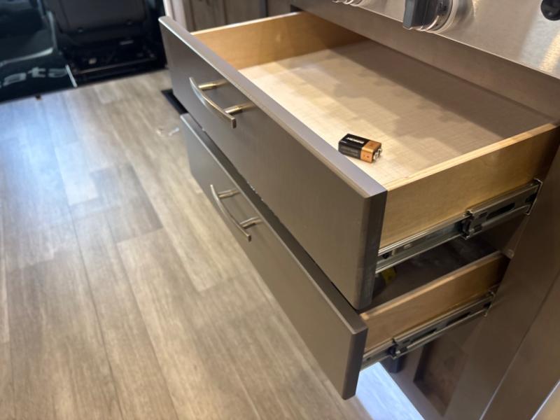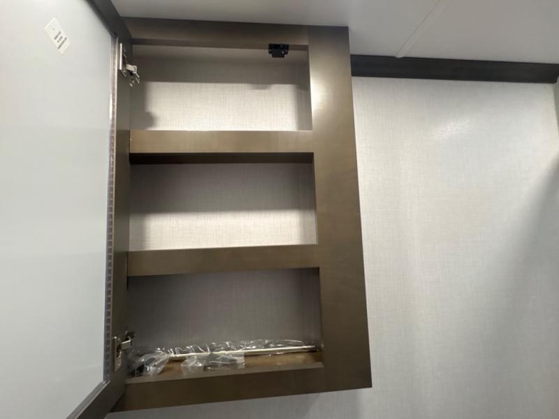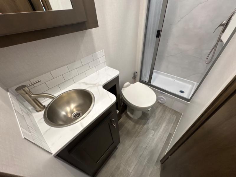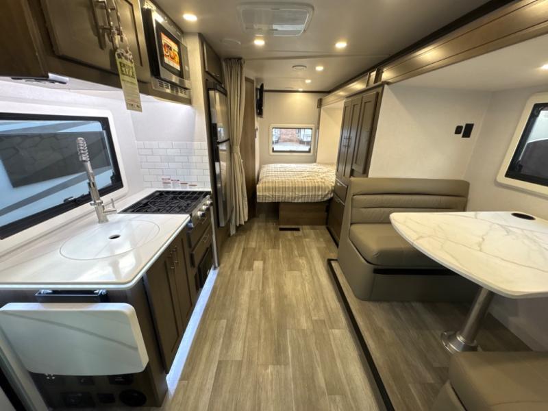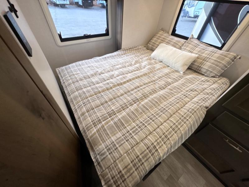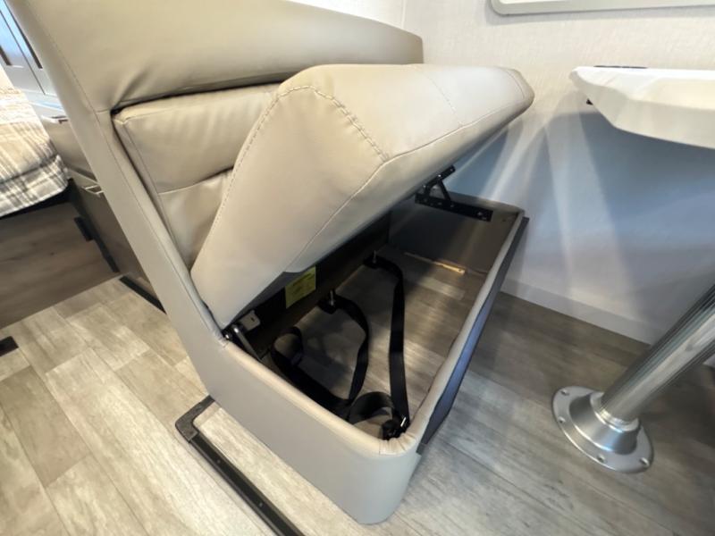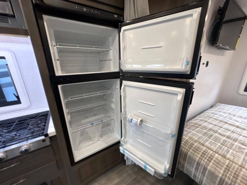 Take this motorhome on your greatest adventures yet! Start each morning feeling well rested after sleeping on the corner queen bed then head to the rear corner bathroom to freshen up in the shower with an Oxygenics body spa RV shower head and a skylight above for added headroom and natural lighting. Now that you're ready for the day, you can grab some eggs from the 8 cu. ft. two-door compressor-driven refrigerator and fry them up on the three burner cooktop, then enjoy them at the booth dinette. The kitchen also has a countertop extension for more meal prepping space and a convection microwave. This unit also includes a living room 32" LED Smart TV and a 32" LED smart TV across from the bed. You could even switch things up by replacing the booth dinette with an optional 3-seat power recliner, and adding a cab over bunk option!