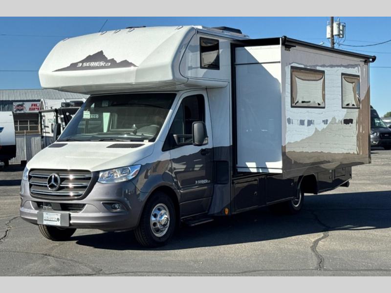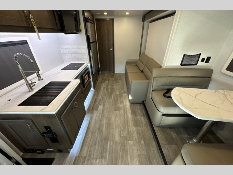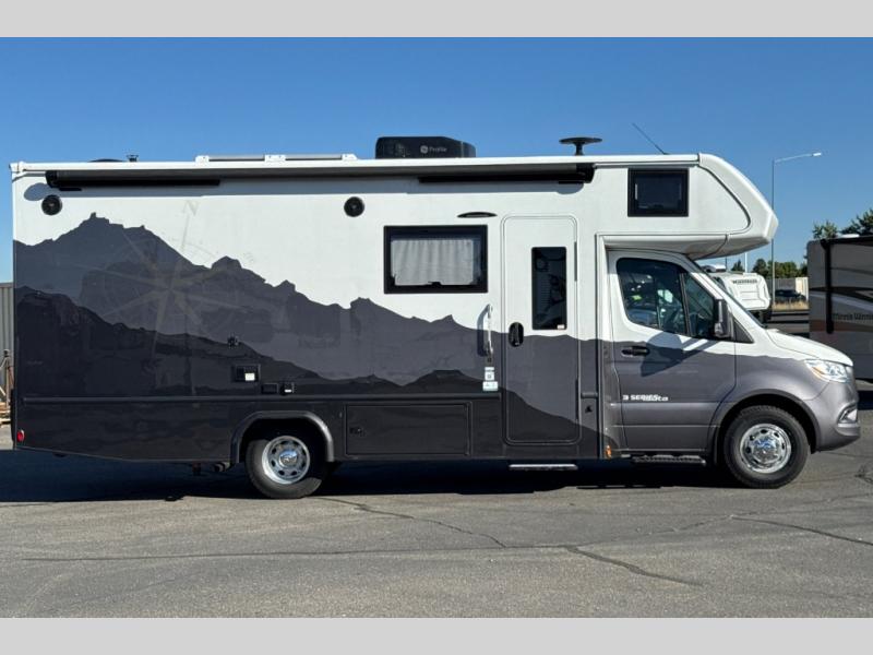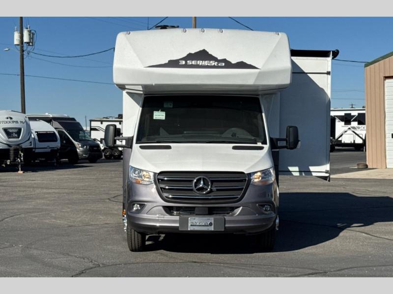 Each one of these Dynamax isata 3 Class C diesel motorhomes were designed to last for years of fun with composite exterior fiberglass with no exterior wood, aluminum-framed roof trusses, and composite flooring substrate. The 2.0L l-4 turbo diesel engine will power your adventures, and the Mercedes-Benz Sprinter chassis provides a durable foundation. There is an MBUX 10.25" infotainment system and a quad-view camera system that will let the driver navigate the open road like a pro, and the added safety features are sure to bring you peace of mind. Outside, you'll be wowed by the custom full-body paint package with front-end Diamond Shield paint protection, plus there are exterior speakers, an armless patio awning with LED lights, and seamless rotocast storage compartments for your gear! Each model also includes many interior comforts to make you feel right at home, like the premium vinyl flooring throughout, hardwood craftsman-style cabinetry, solid surface countertops with LED edge lighting and backsplash, and the list goes on!
