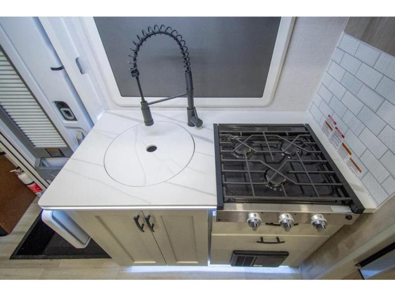 The 2026 Dynamax Isata 3 Series model 24TW is approximately 24 feet 7 inches in length powered by a I4 Turbo 208HP diesel engine on a Mercedes-Benz sprinter chassis.